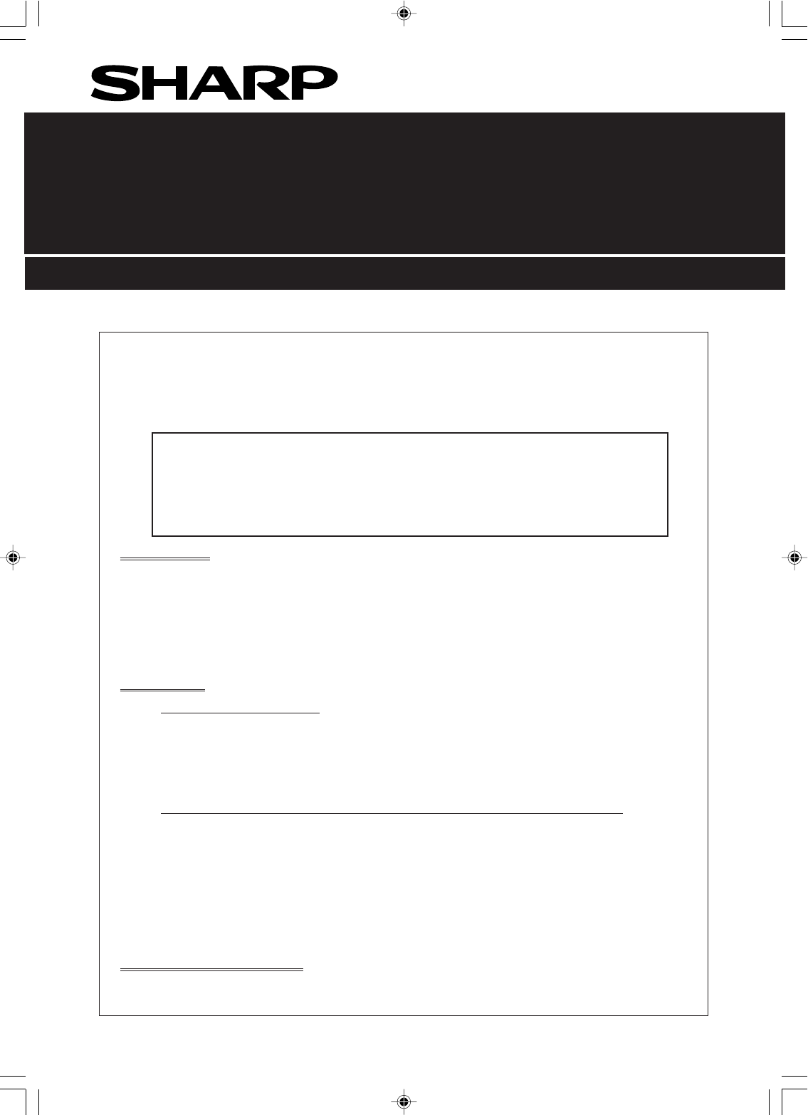 SHARP ELECTRONICS CORPORATION warrants to the first end-user purchaser that this Sharp brand