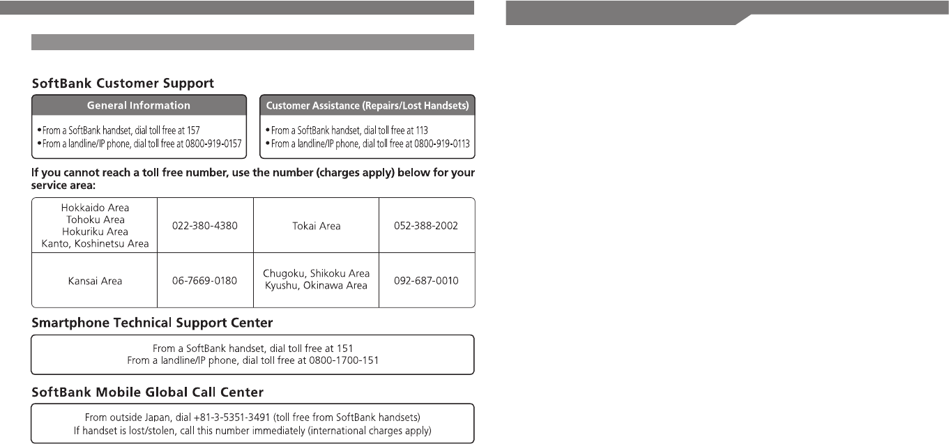 For information about SoftBank handsets or services, contact us at the following numbers.