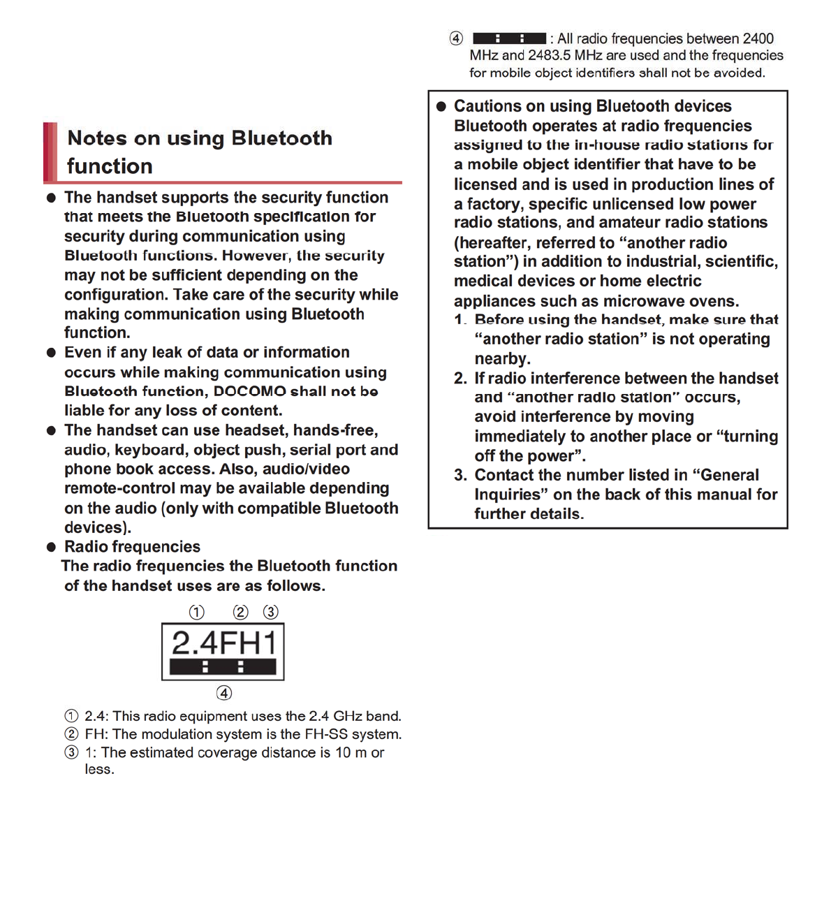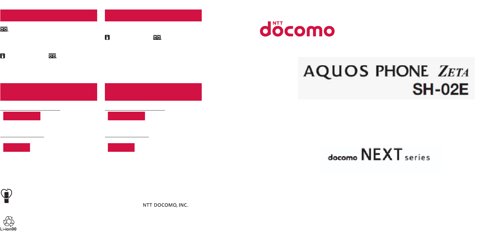 For Applications or Repairs and After-Sales Service, please contact the above-mentioned information center or the docomo Shop etc. near you on