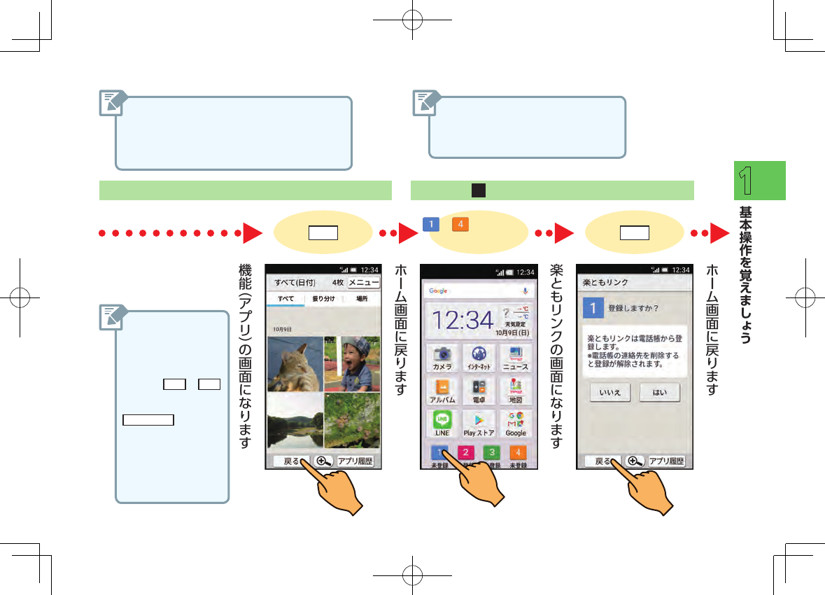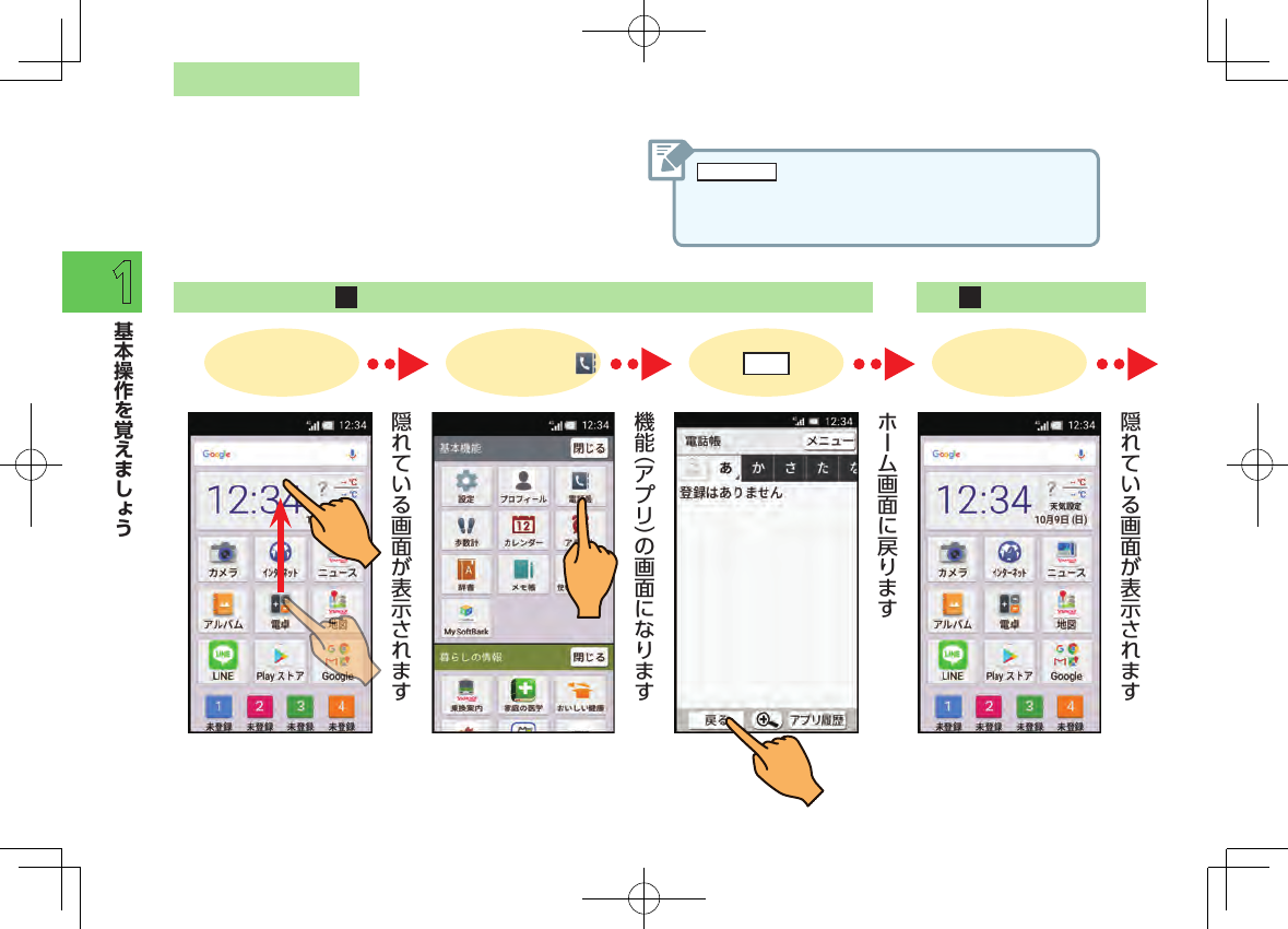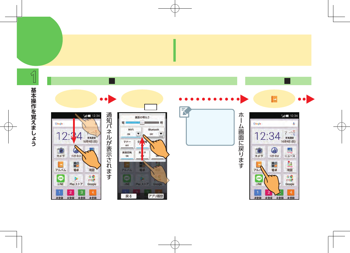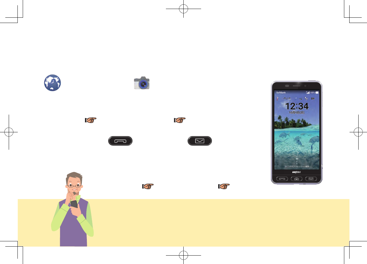 .本書は、特にことわりのない限り、お買い上げ時の状態で、ホーム画面からの操作方法を説明しています。