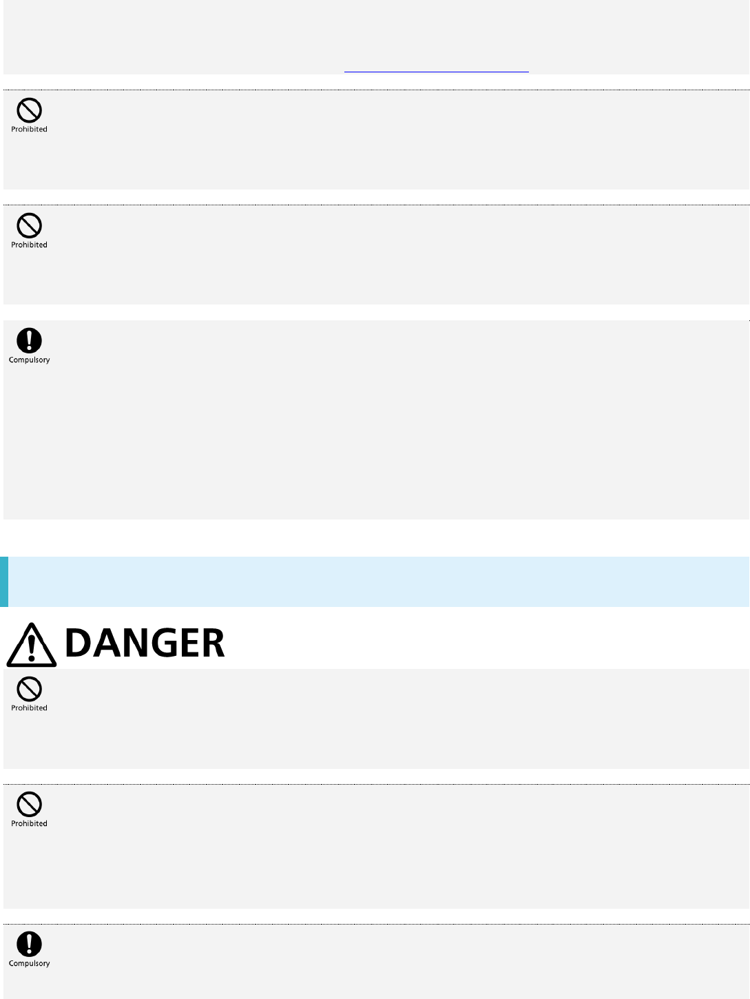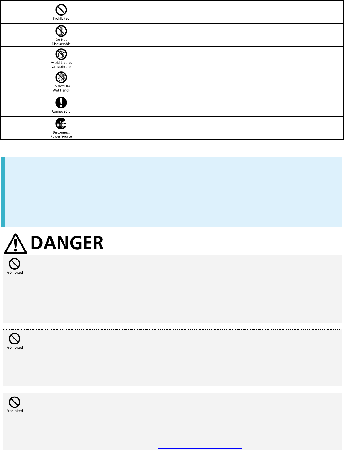 may cause overheating, burnout, fire, malfunction, burns, etc. due to electric shock,