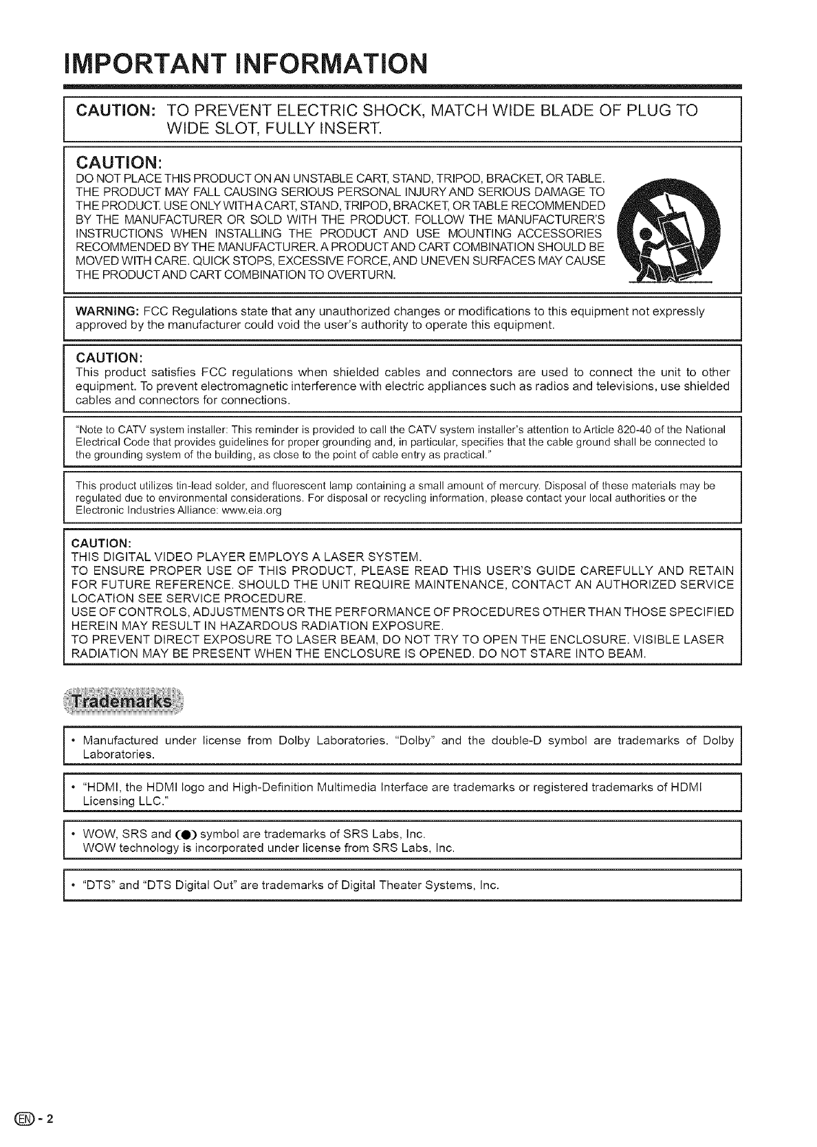 . "DTS" and "DTS Digital Out" are trademarks of Digital Theater Systems, Inc. i