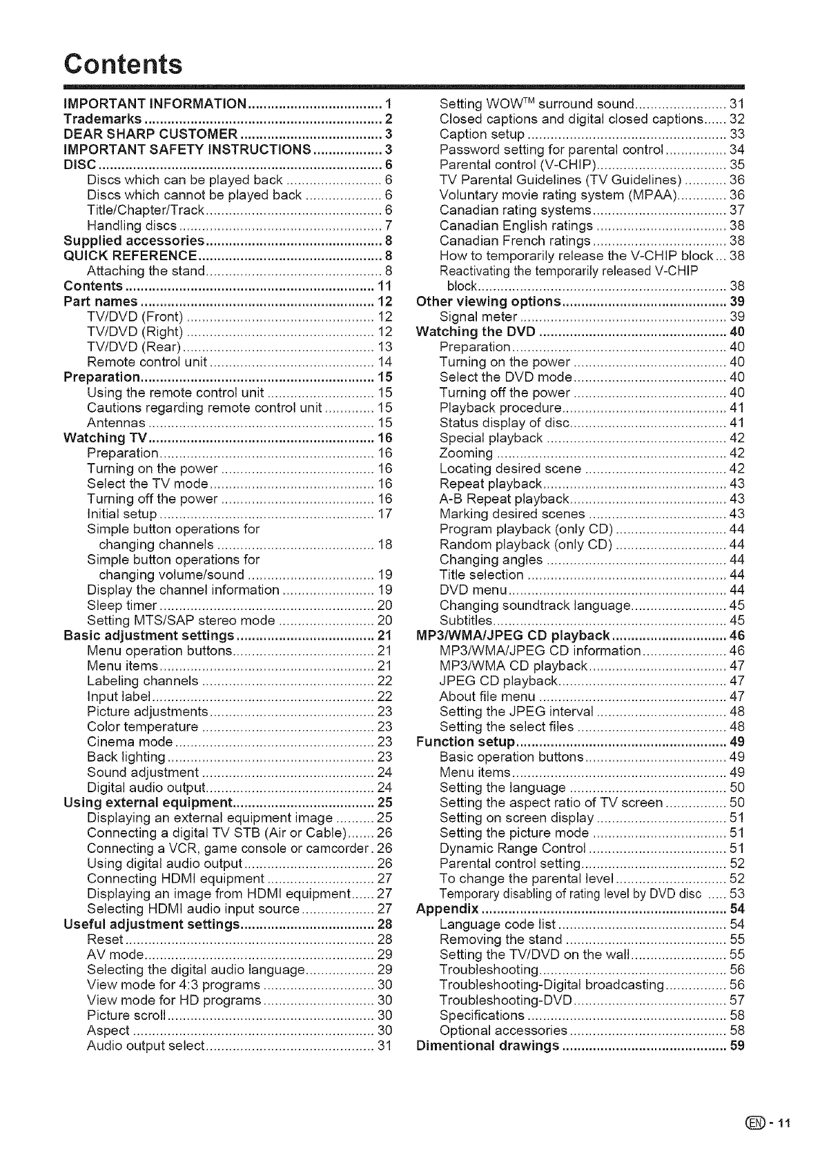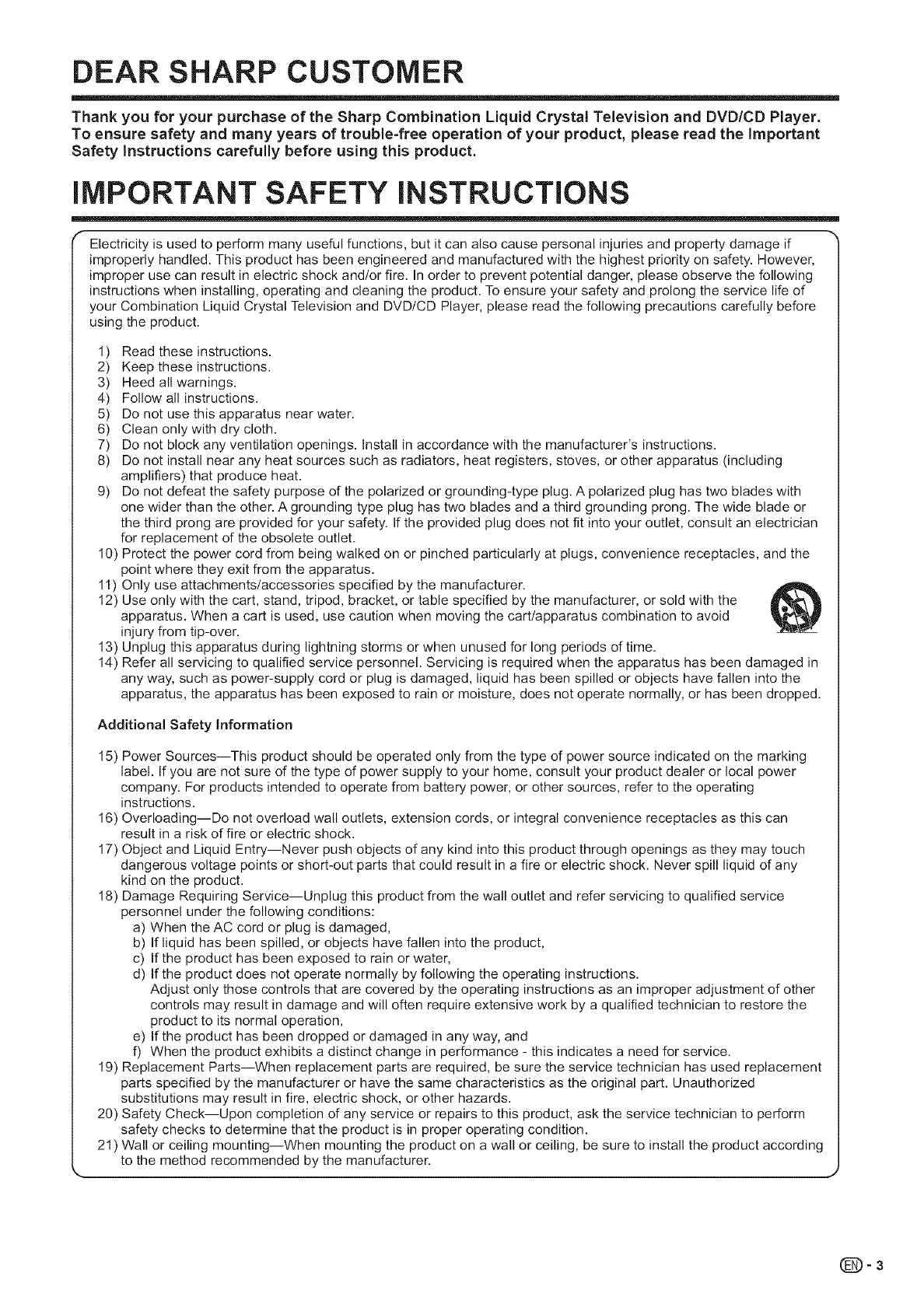 Thank you for your purchase of the Sharp Combination Liquid Crystal Television and DVD/CD Player.