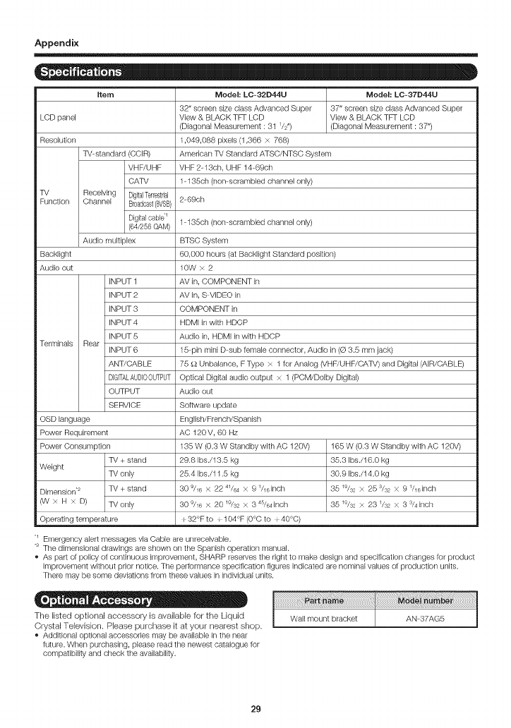 User Manual: Sharp LC-32D44U LC-32D44U SHARP TV LCD - Manuals and Guides View the owners manual for your SHARP TV LCD #LC32D44U. Home:Electronics Parts:Sharp Parts:Sharp TV LCD Manual