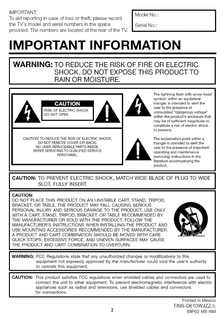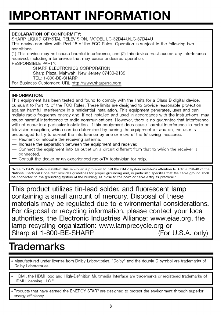 Your Product Model Humber & Description: LC+32D44U/LC+37D44U LCD Color Television
