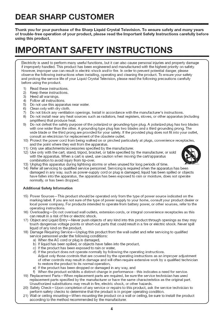 Sharp LC 32D44U User Manual TV LCD Manuals And Guides L0907064
