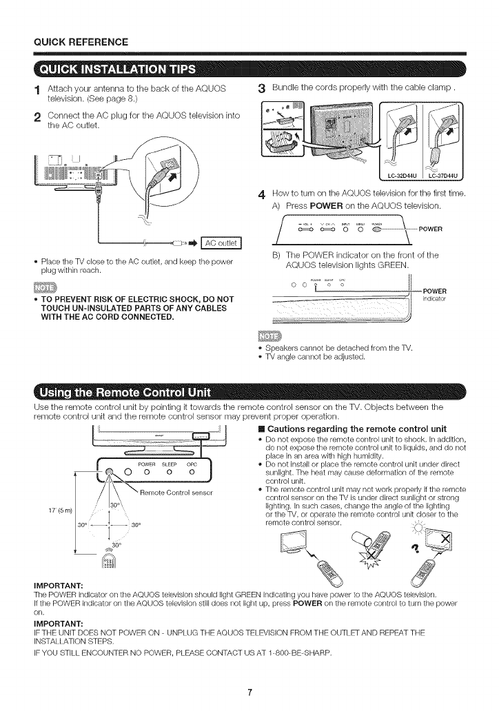 SHARP LIQUID CRYSTAL TELEVISION, MODEL LC-32D44U/LC-37D44U