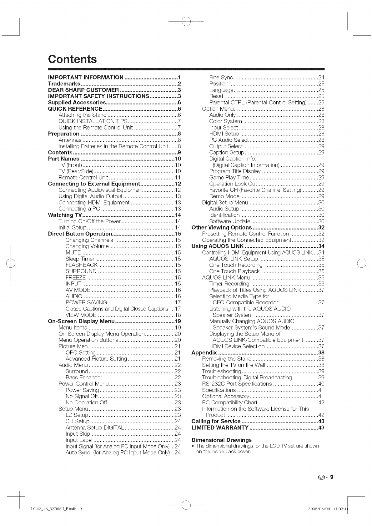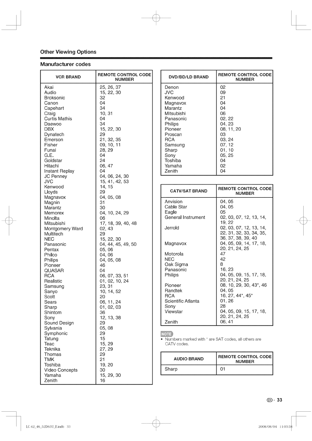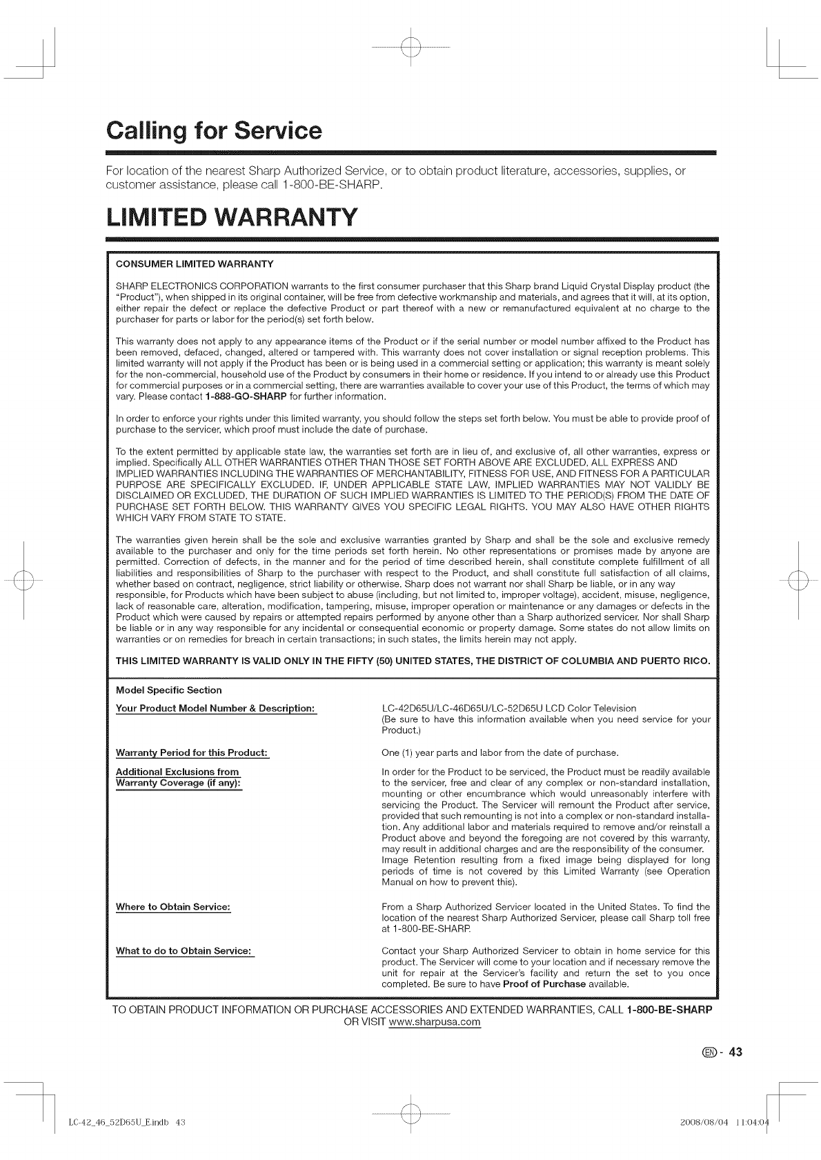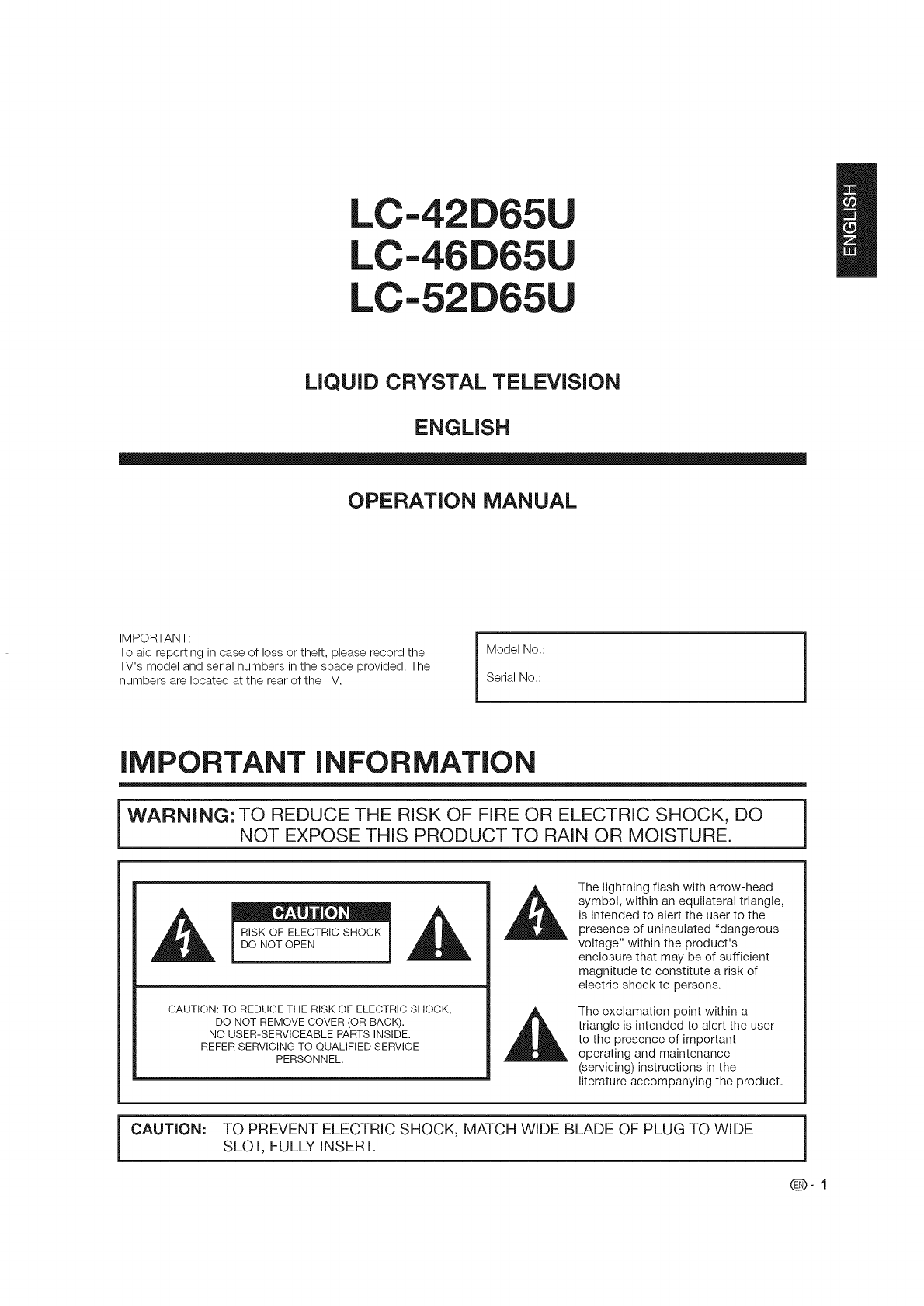 Sharp LC 42D65U User Manual LCD TELEVISION Manuals And Guides L0810366