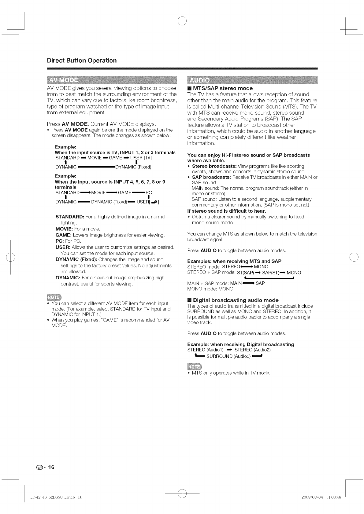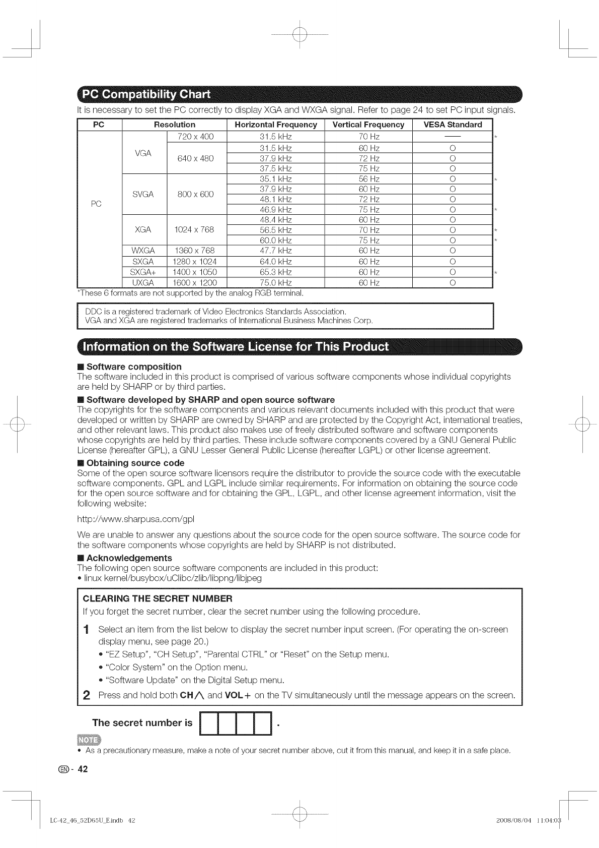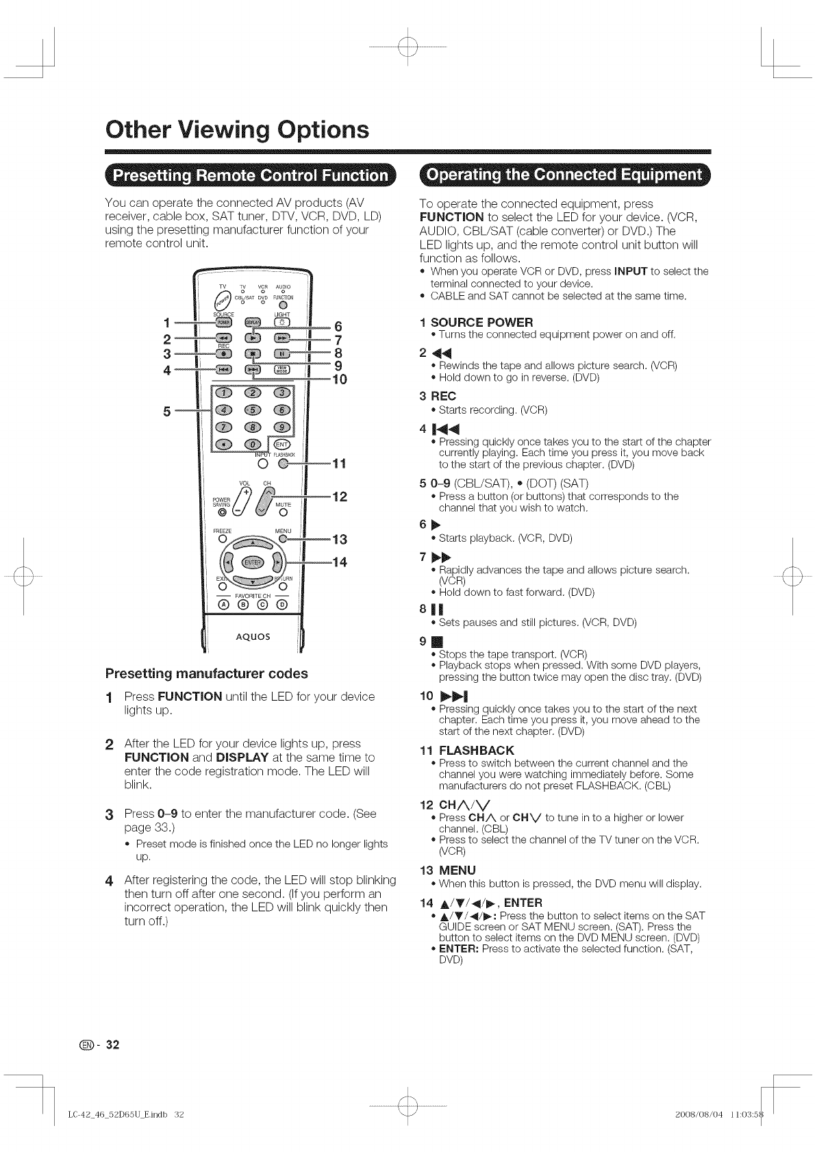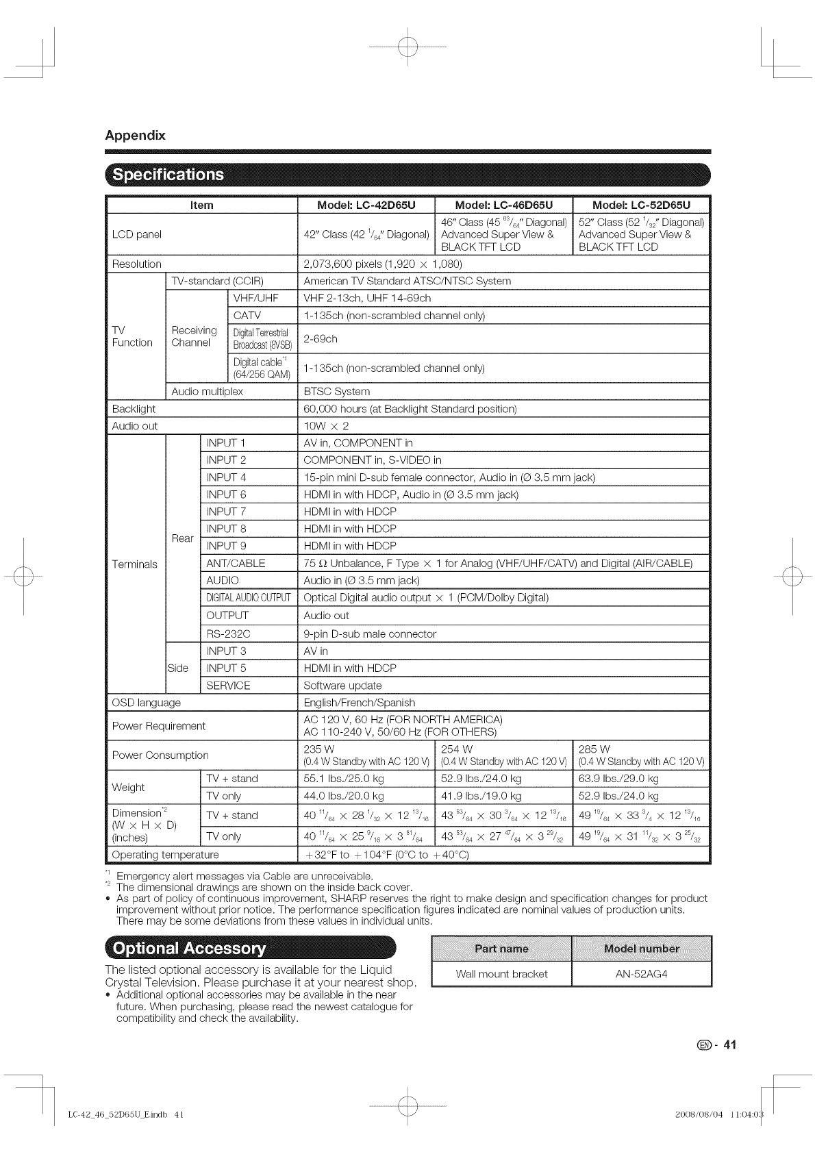 Sharp LC 42D65U User Manual LCD TELEVISION Manuals And Guides L0810366