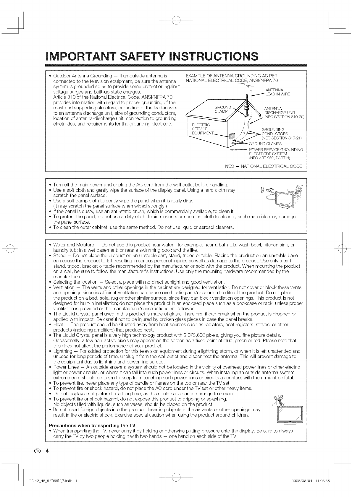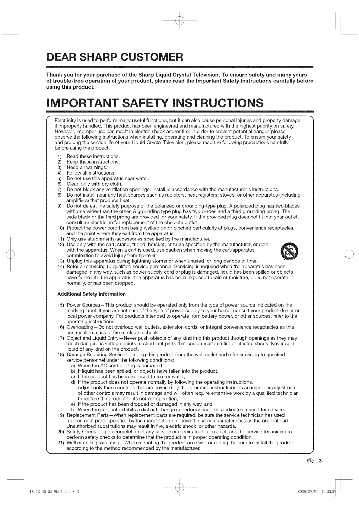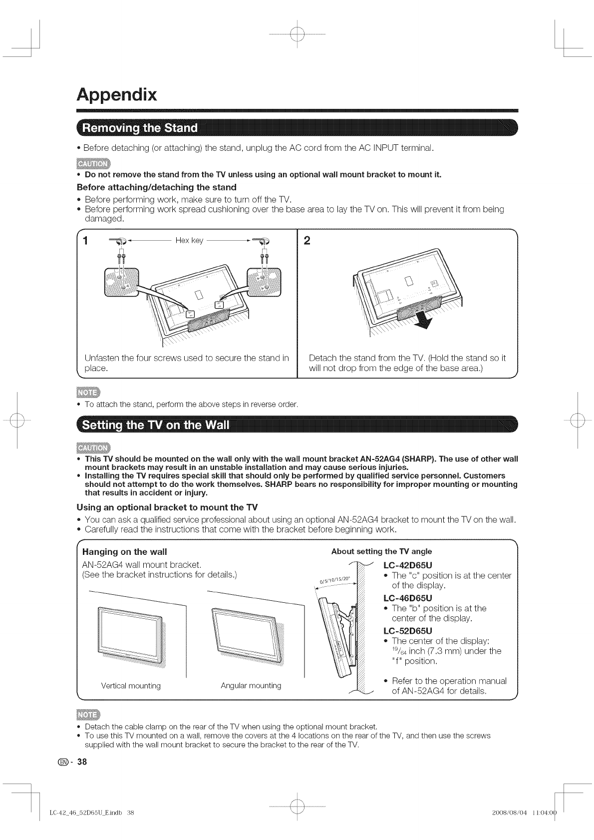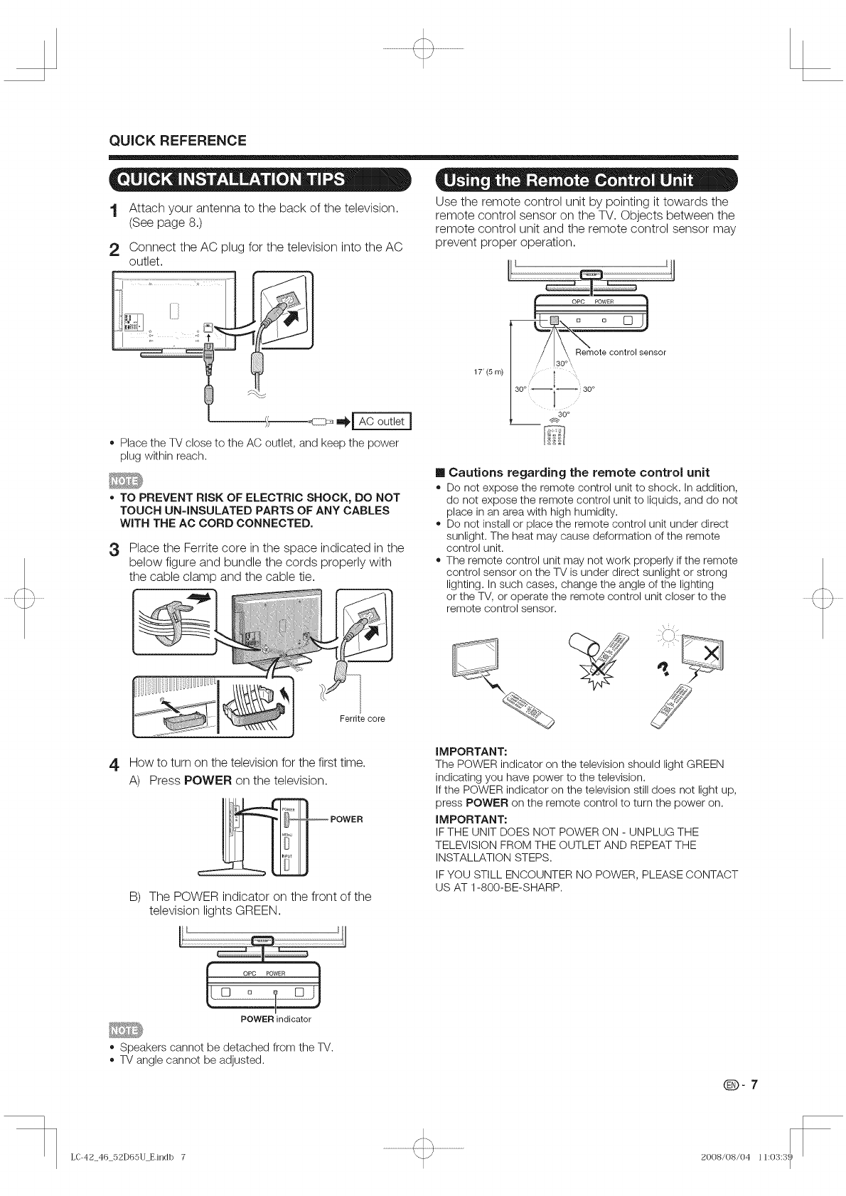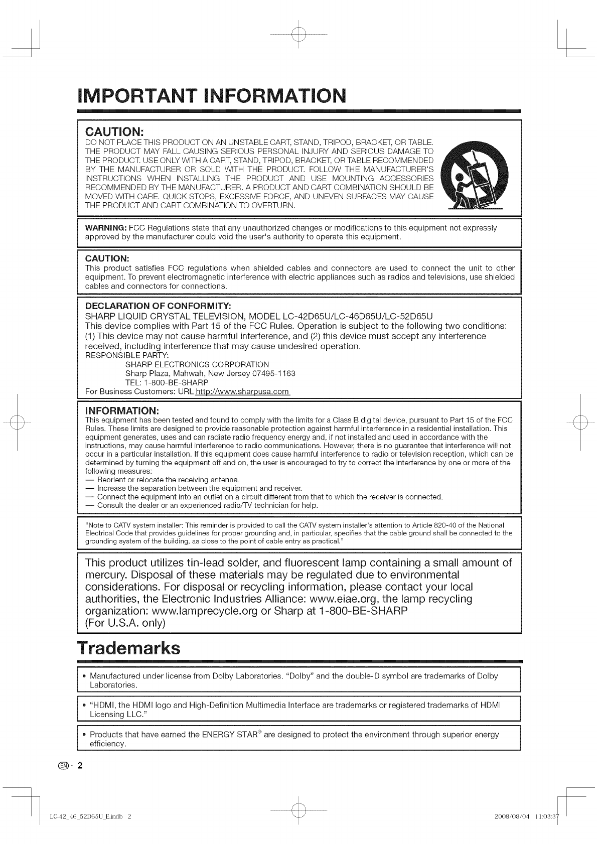 SHARP LCD Television Manual L0810366 SHARP LCD Television Owner's Manual, SHARP LCD Television installation guides