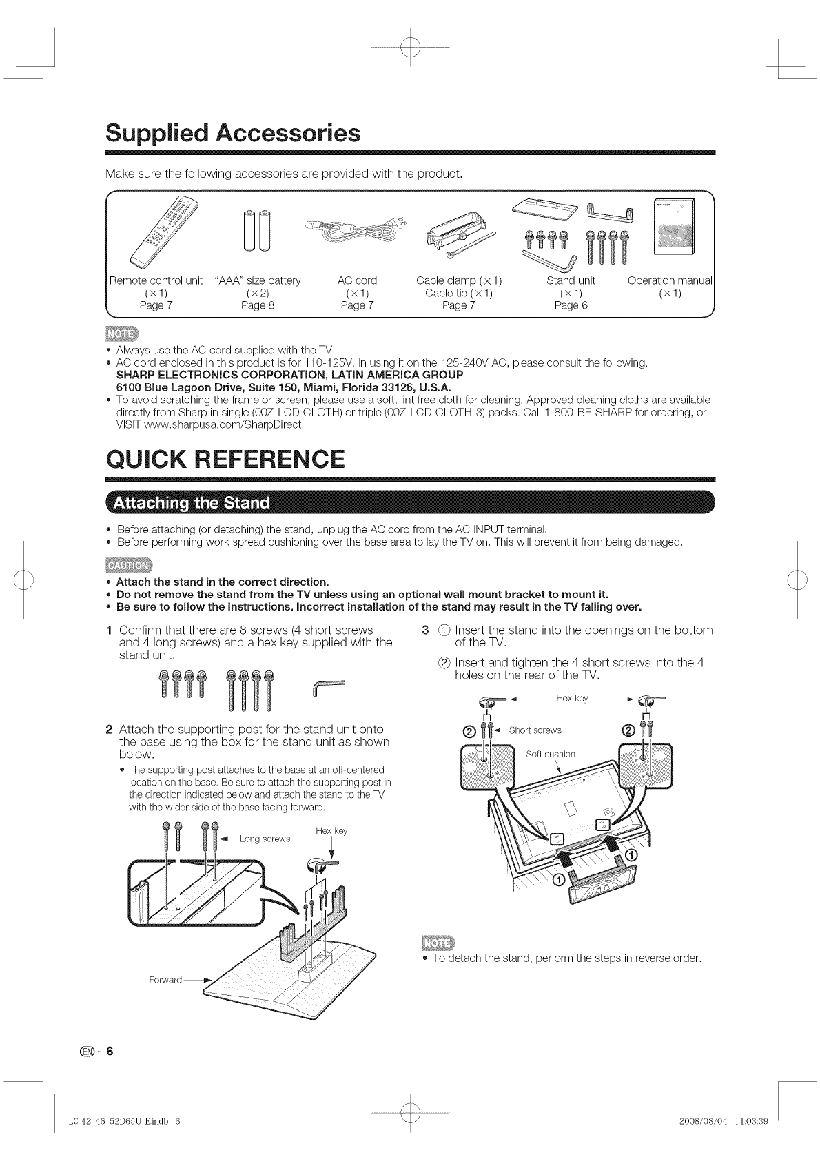 LC-42D65U/LC-46D65U/LC-52D65U LCD Color Television
