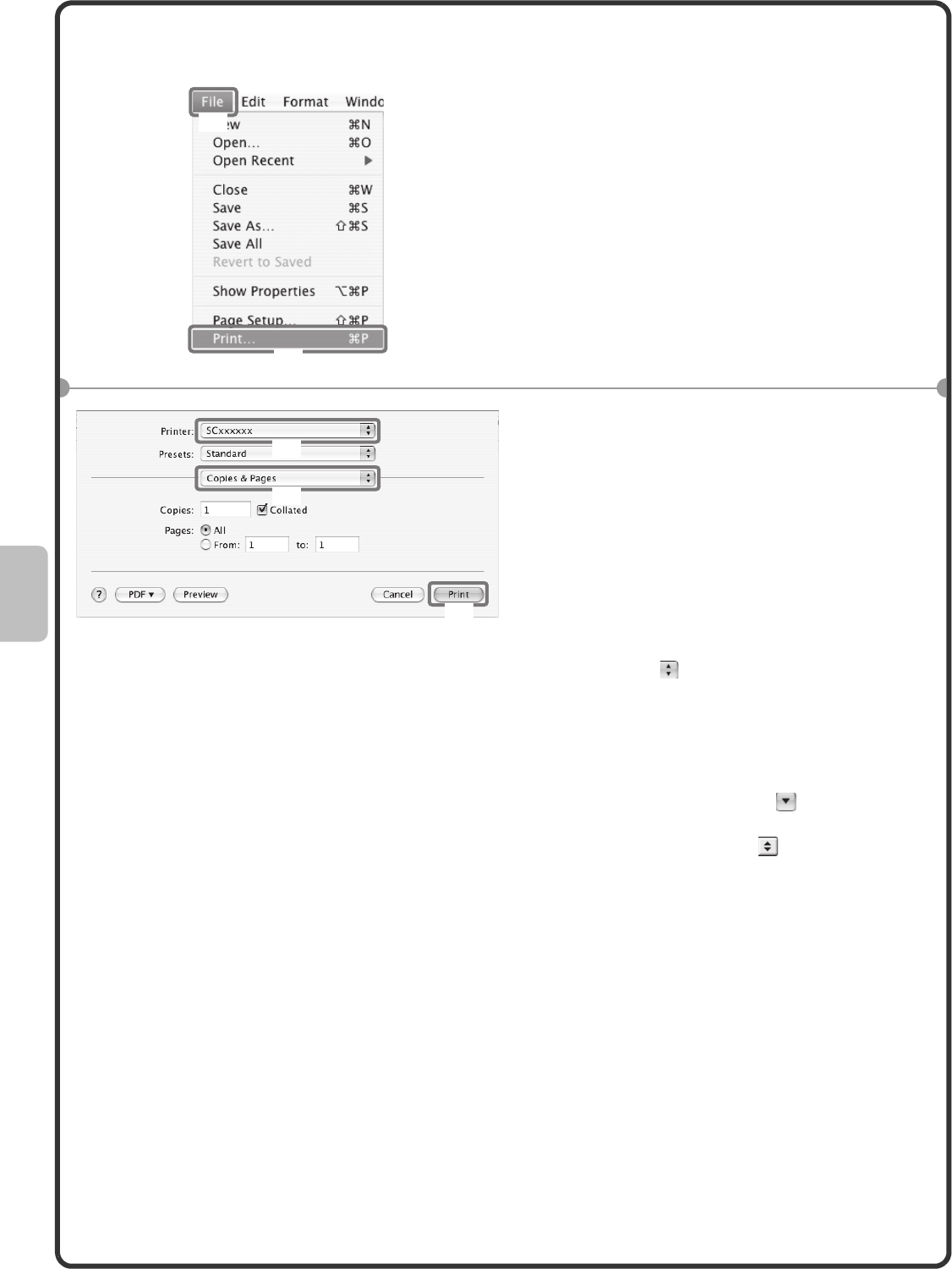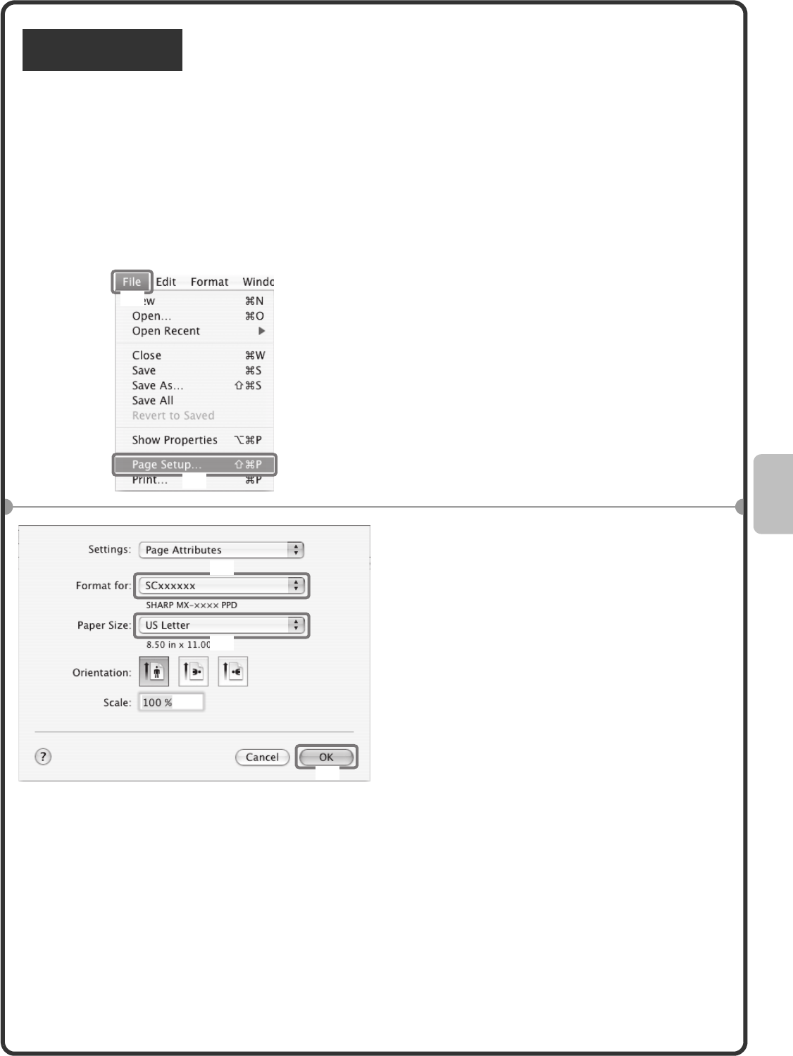 • The explanations of screens and procedures in a Macintosh environment are based on Mac OS X v10.4 in the case of Mac OS