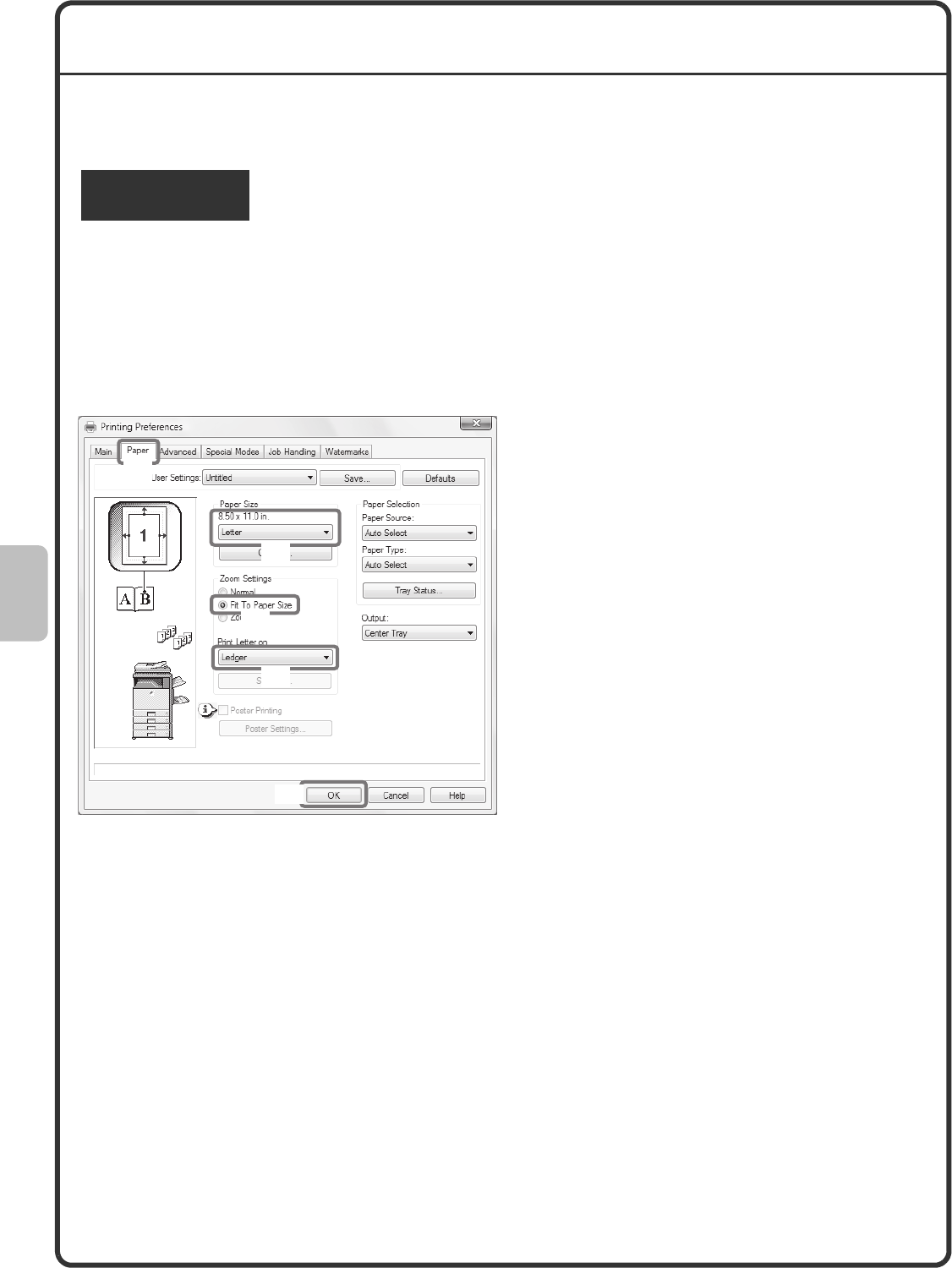 Select the paper size on which you wish to print the job