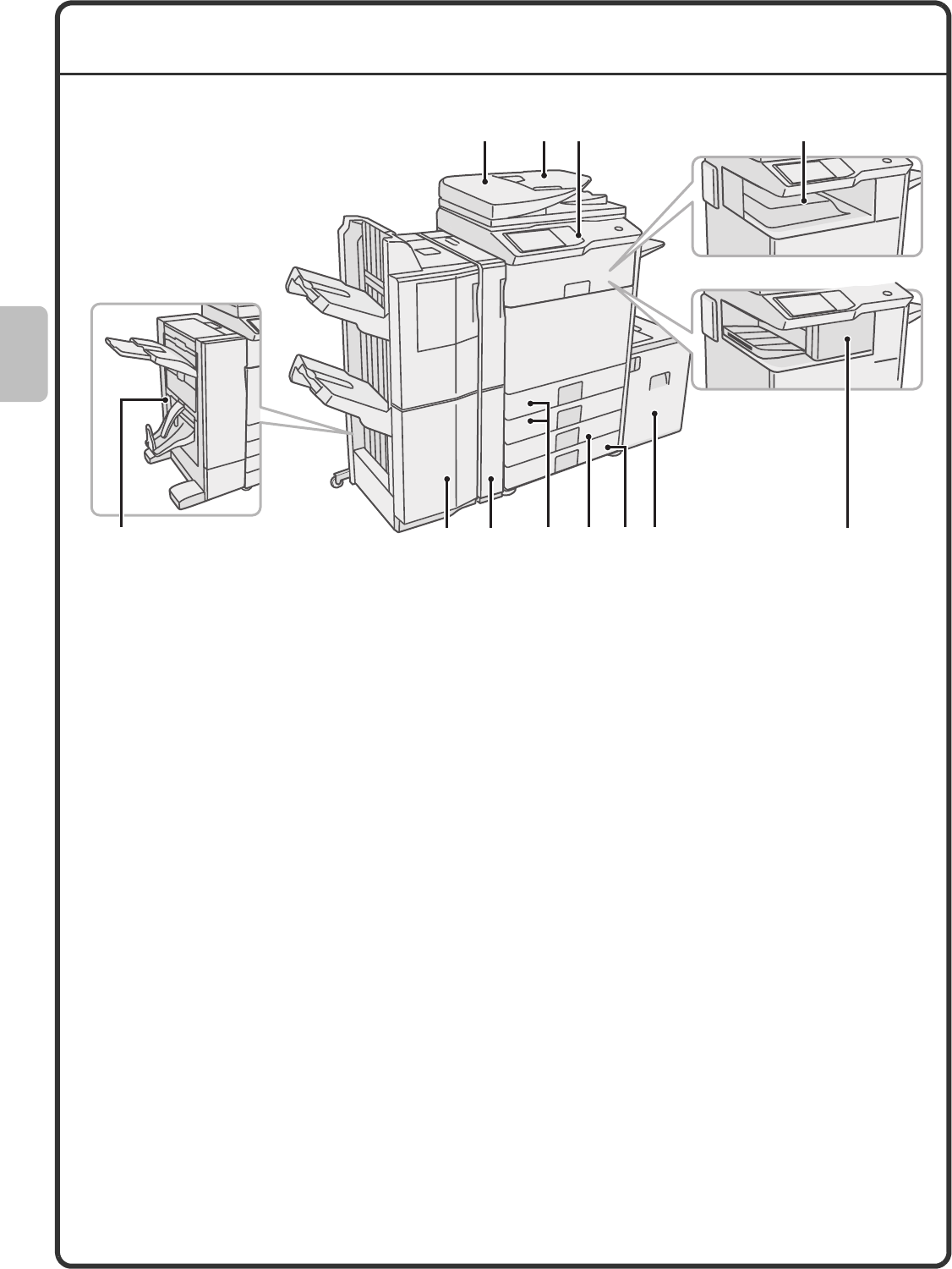 The explanations in this manual assume that a right tray and stand/2x500 sheet paper drawer are installed on the MX-M503N.
