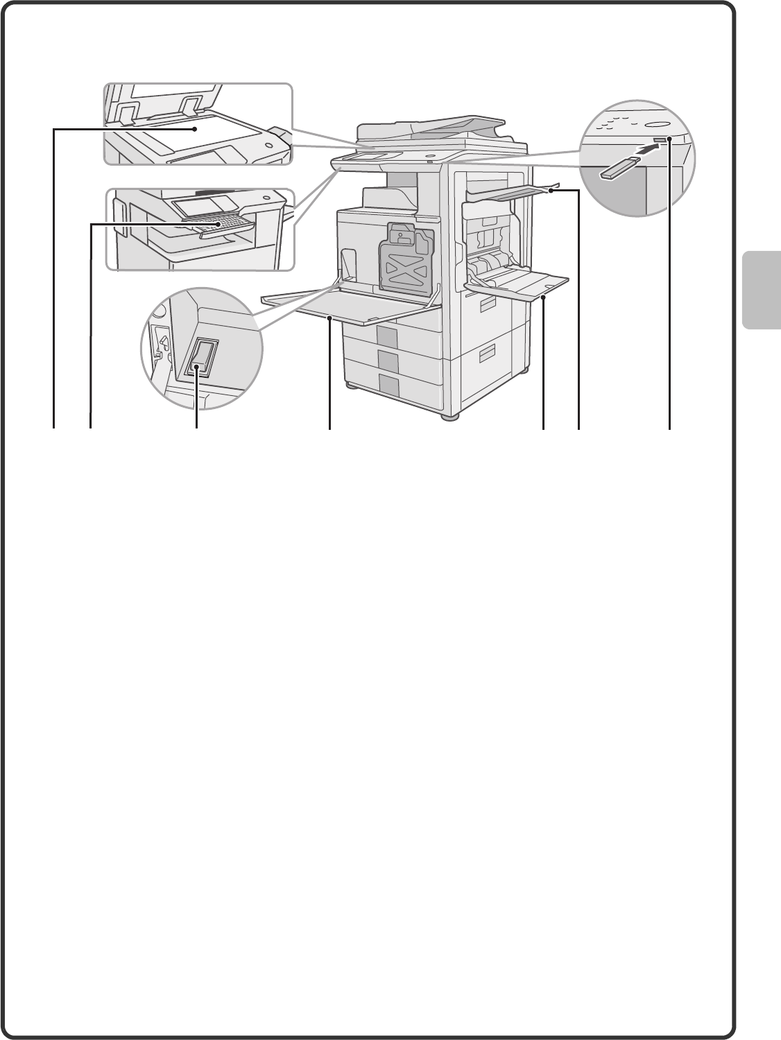 The explanations in this manual assume that a right tray and stand/2x500 sheet paper drawer are installed on the MX-M503N.