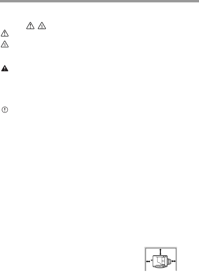 • Do not cover the unit with a dust cover, cloth or plastic film while the power is on.