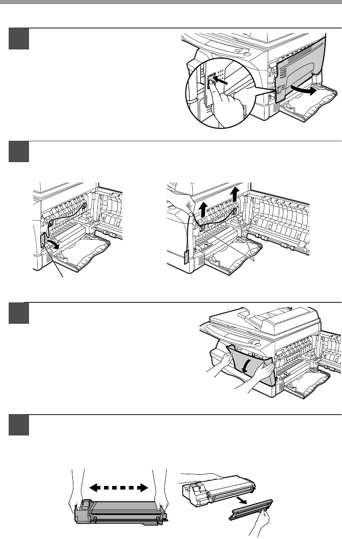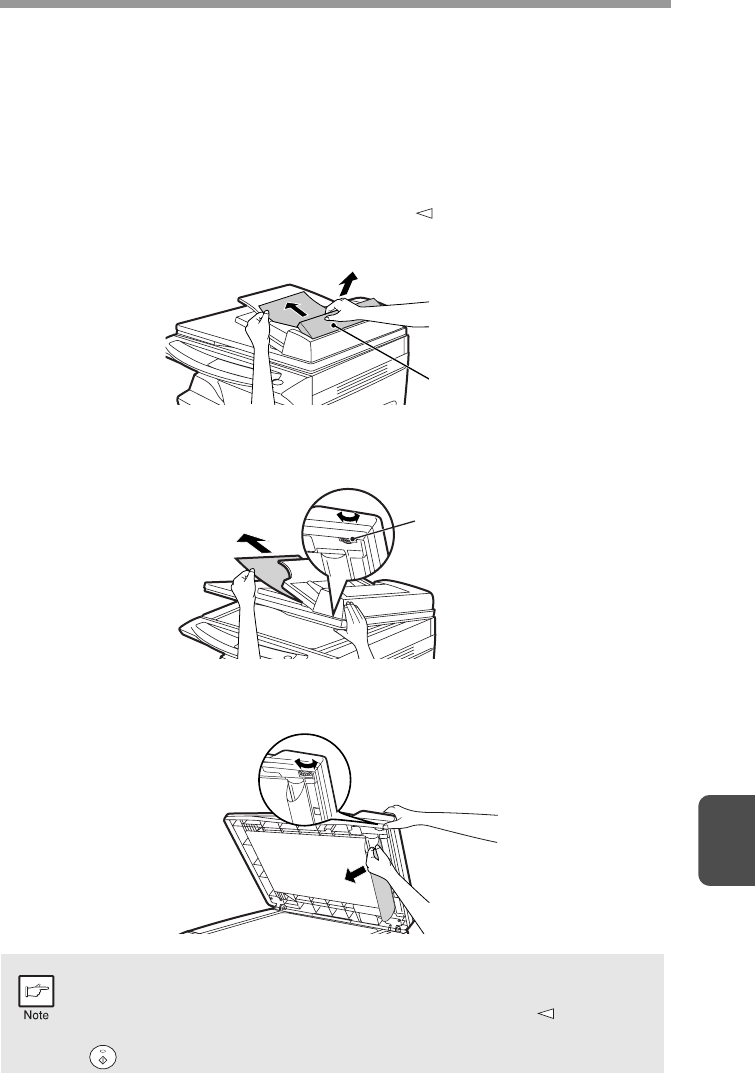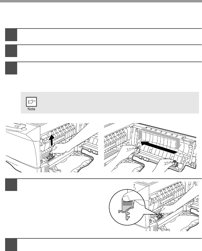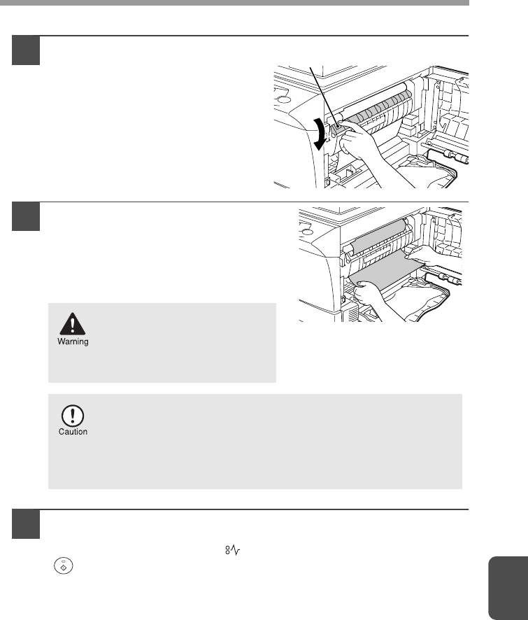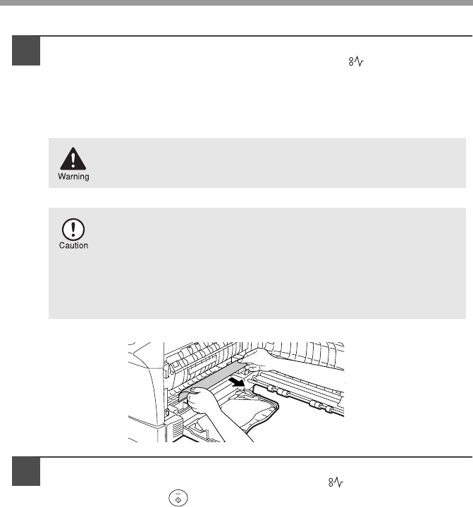 • The fusing area is hot. Exercise care in this area when removing misfed paper.