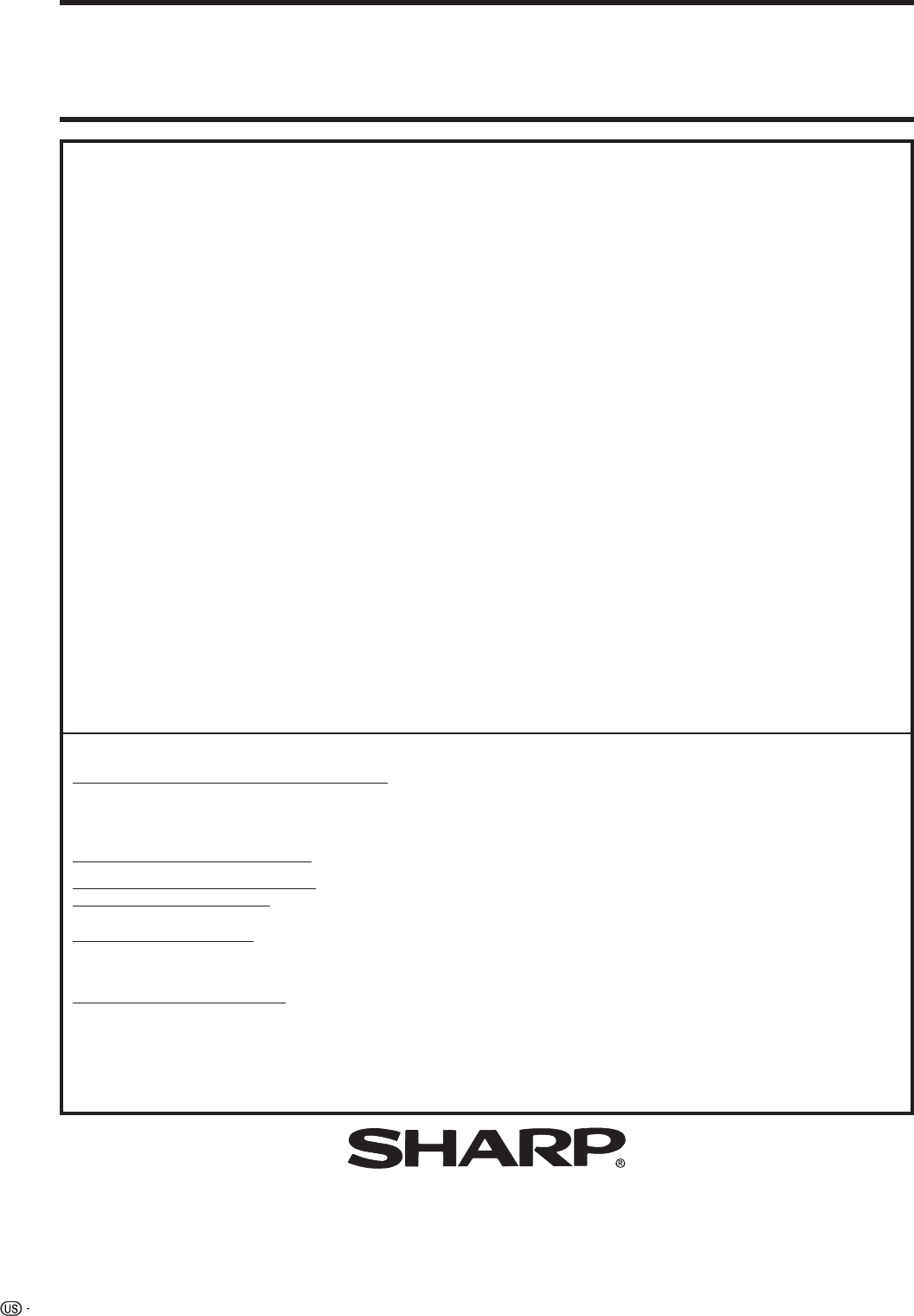 TO OBTAIN PRODUCT INFORMATION, CALL 1-888-LCD-SHARP OR VISIT www.sharpusa.com