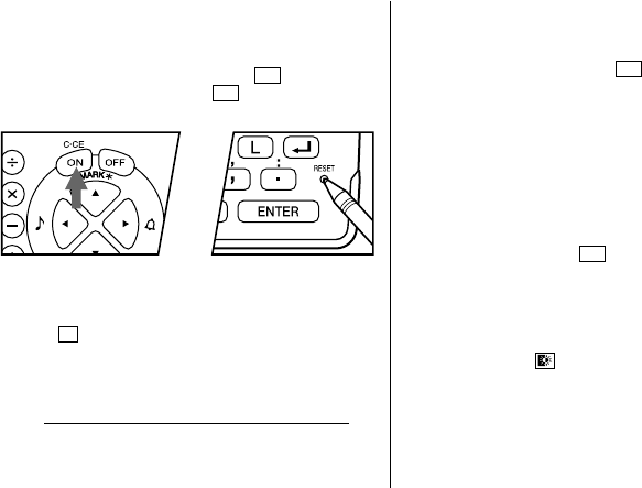 1. Press the RESET switch while holding ON . Release the