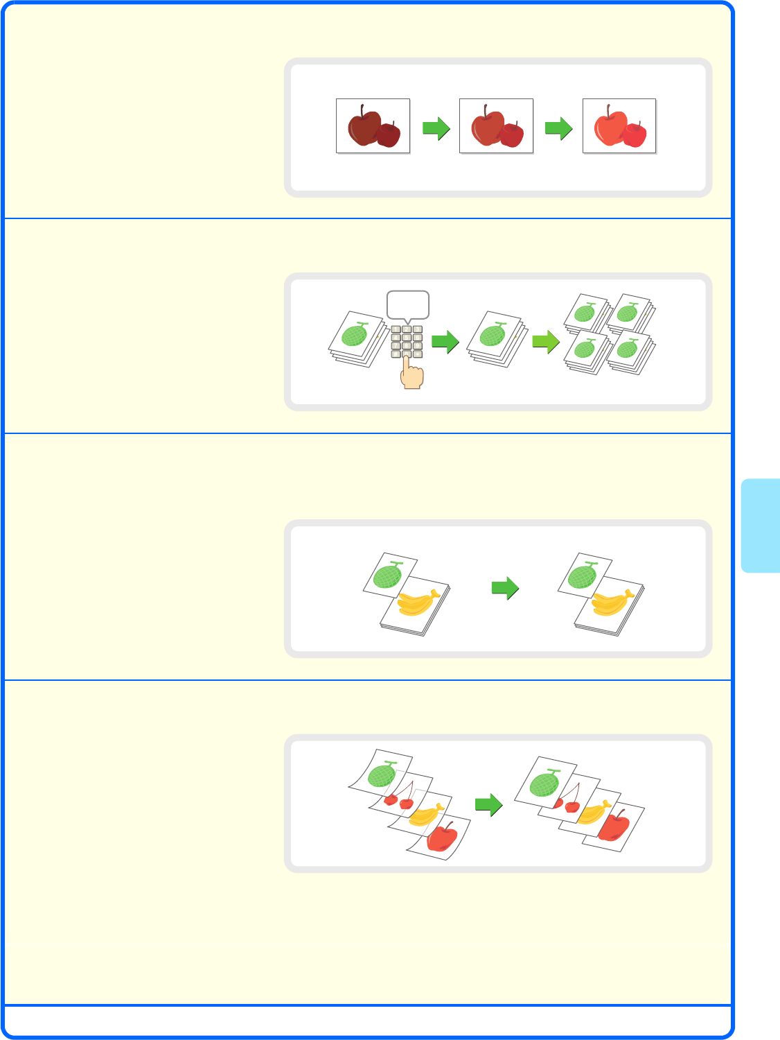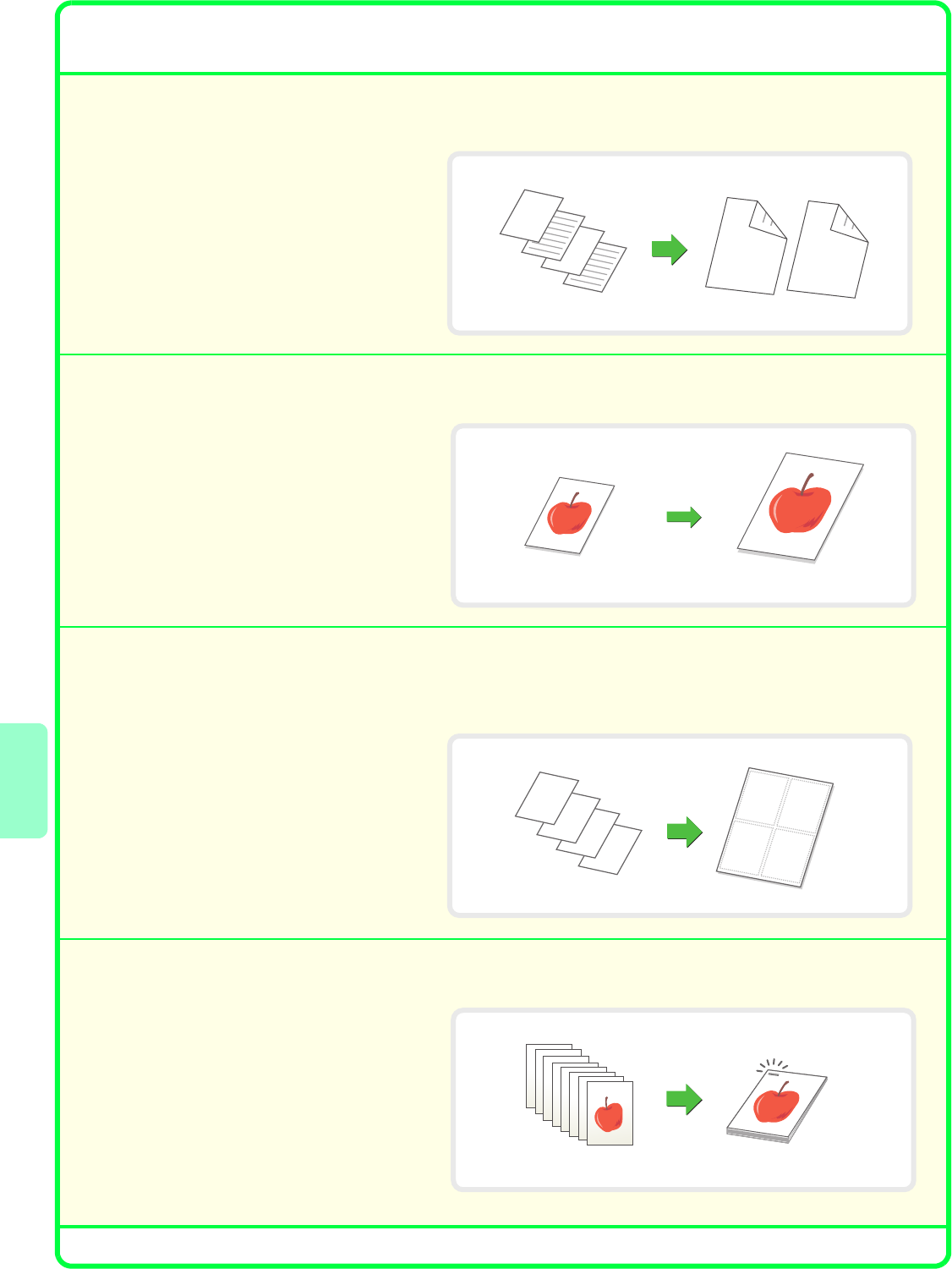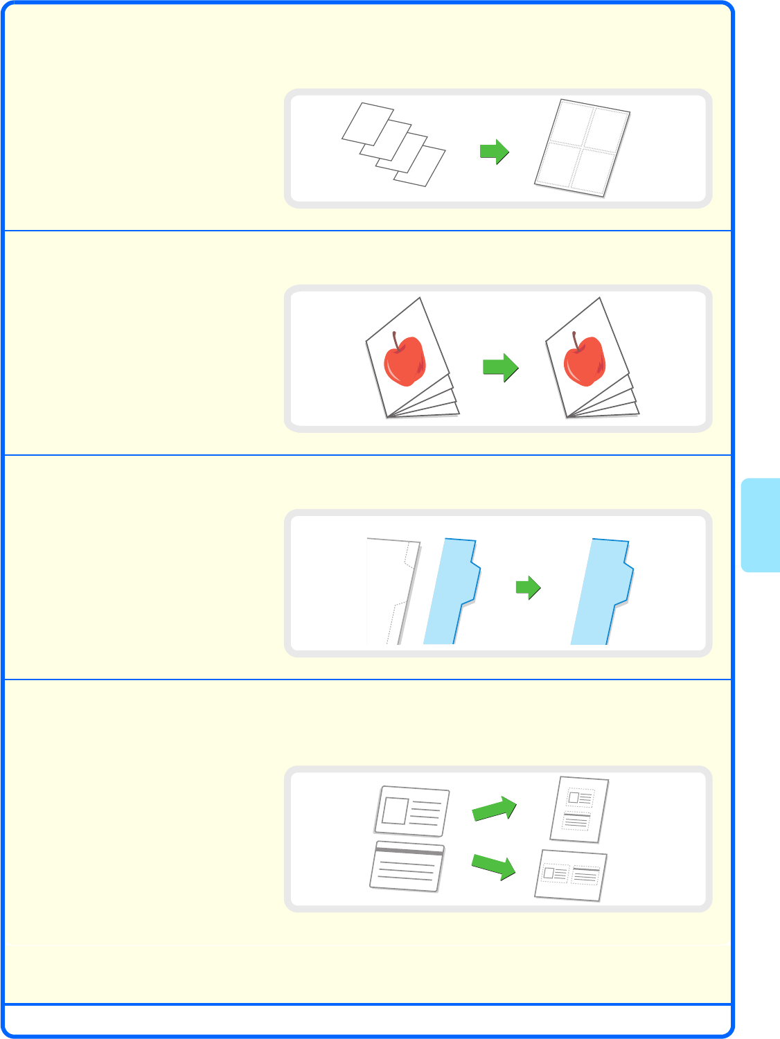 - Copying multiple pages onto one sheet of paper (Multi Shot)
