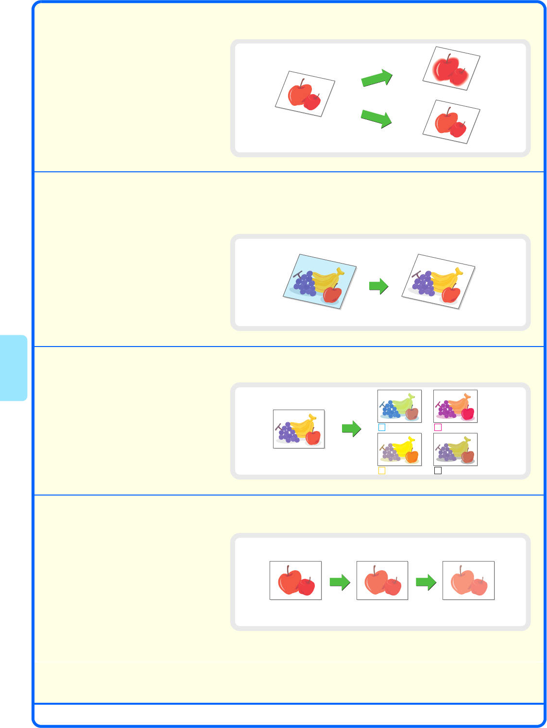 - Adjusting red/green/blue in copies (RGB Adjust)