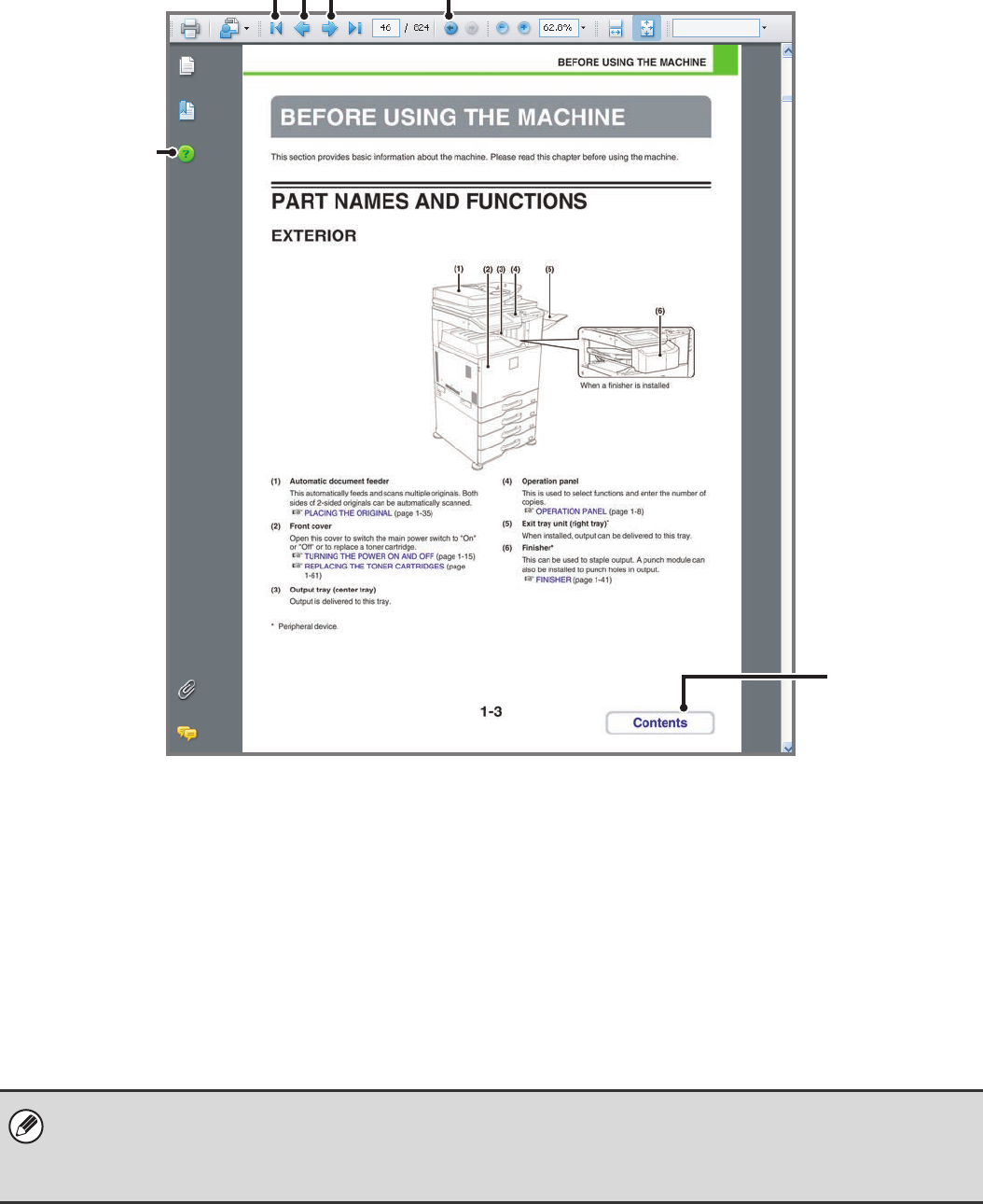 The following explanation assumes that Adobe Reader 8.0 is being used (Some buttons do not appear in the default