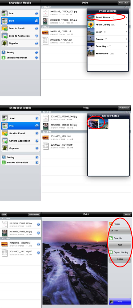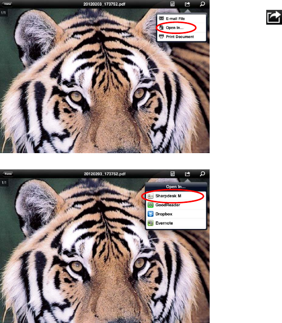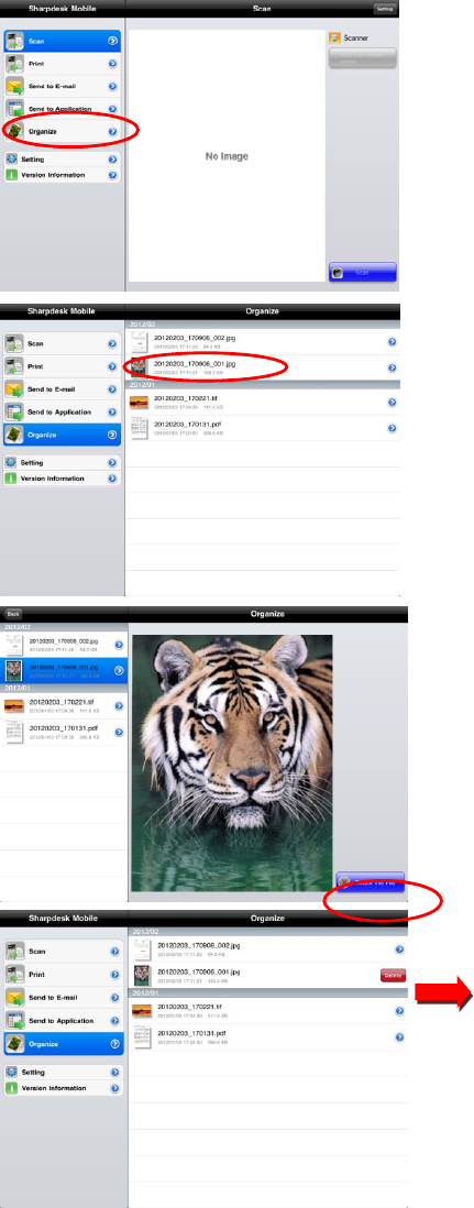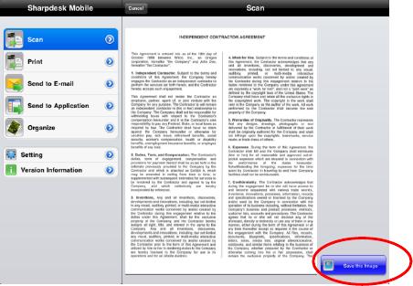- Attaches the scanned documents stored in this application to e-mail, and sends and utilizes the