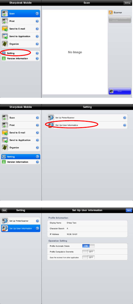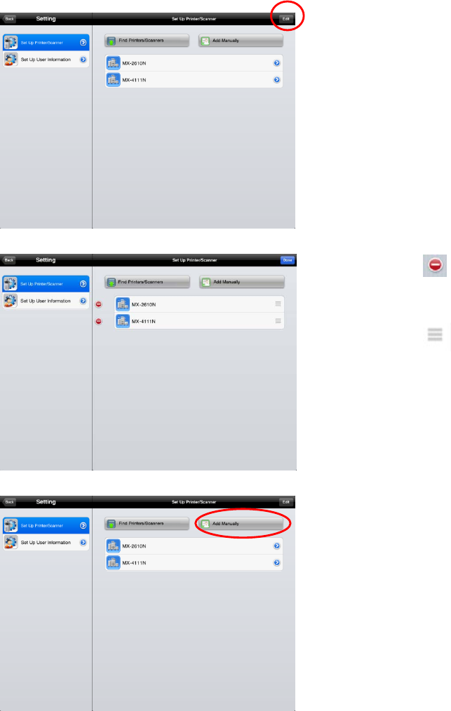 After starting this application, set up the printers to print from the device and the scanners from which the