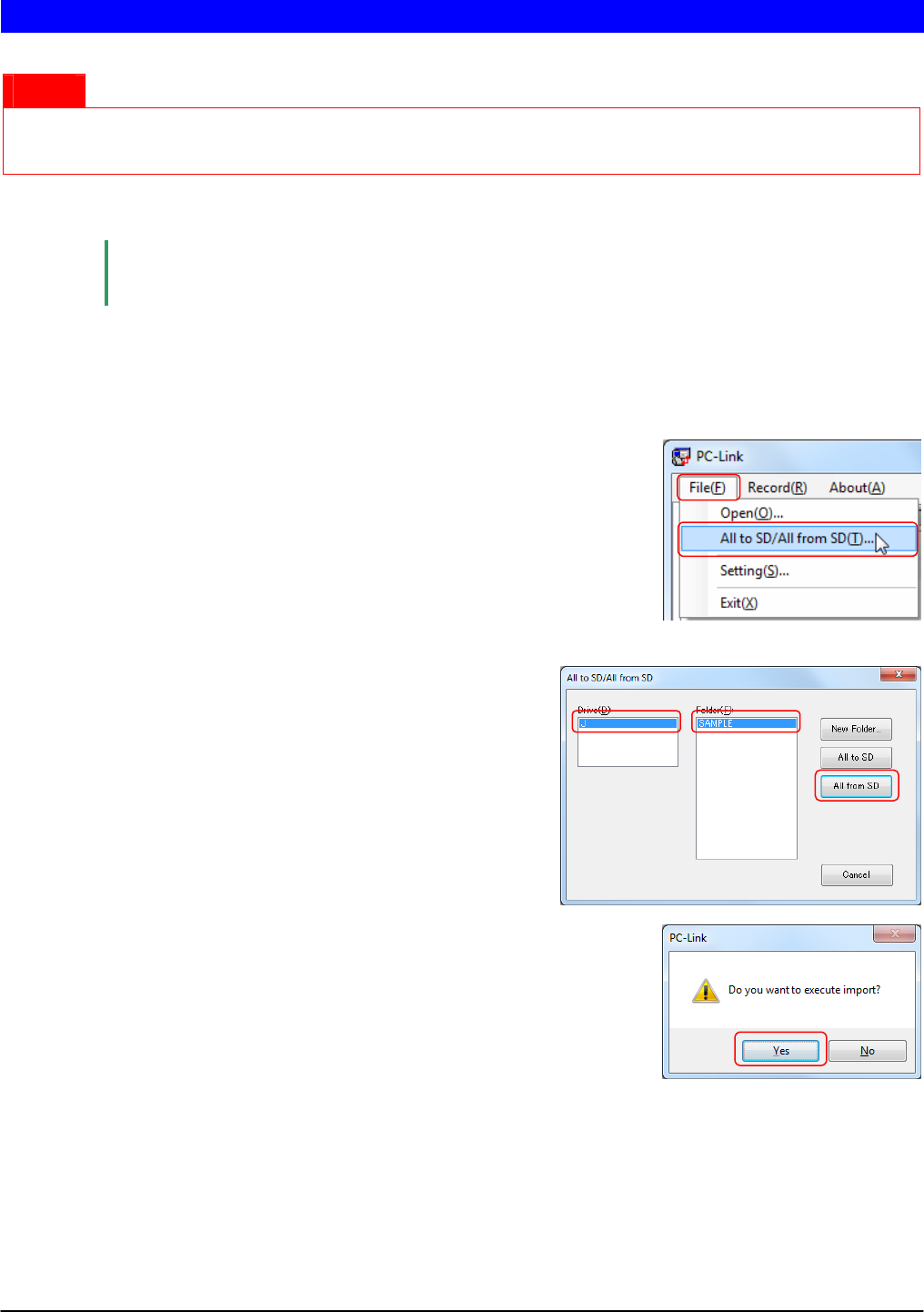 Failed in import. • For details of writing data to an SD memory card with the cash