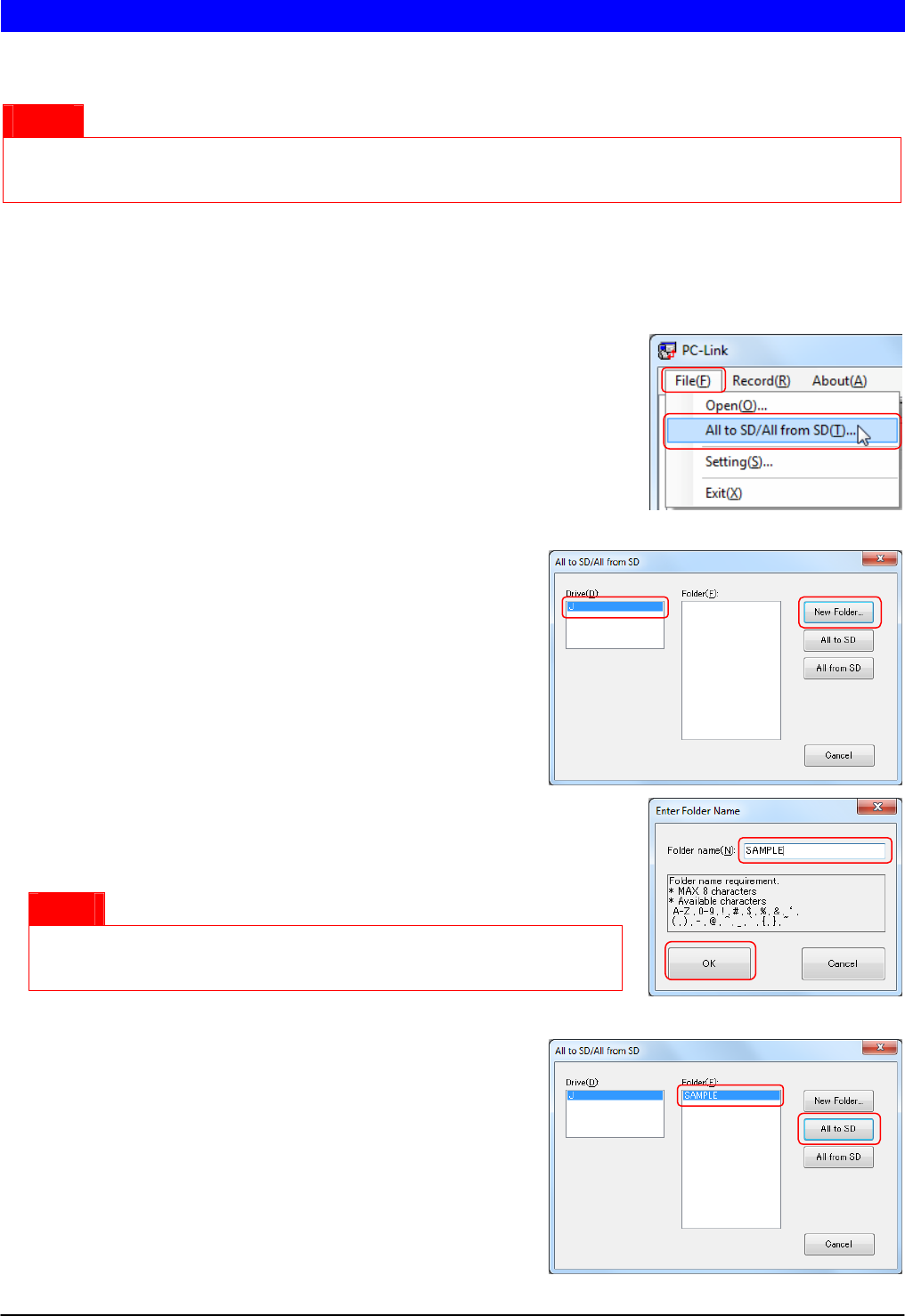 No folder has been selected. This message appears when you try to write data to an SD memory