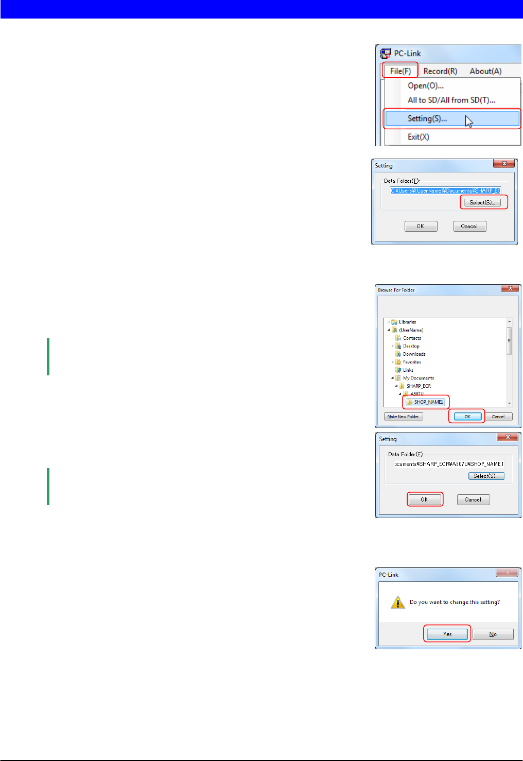 Import folder is not specified. Click the name of the displayed folder, and then [OK].