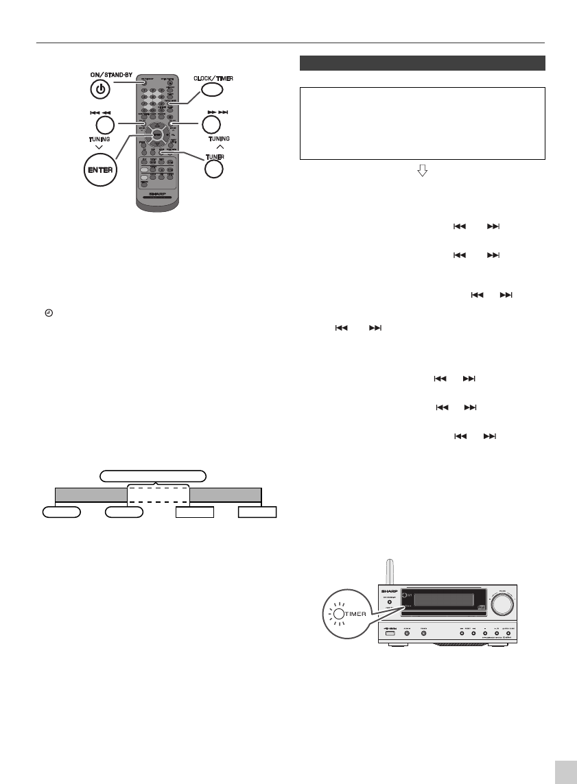 - Se il tasto ON/STAND-BY si trova nella posizione STAND-BY, l’unità può essere accesa con il modo timer o con il telecomando.