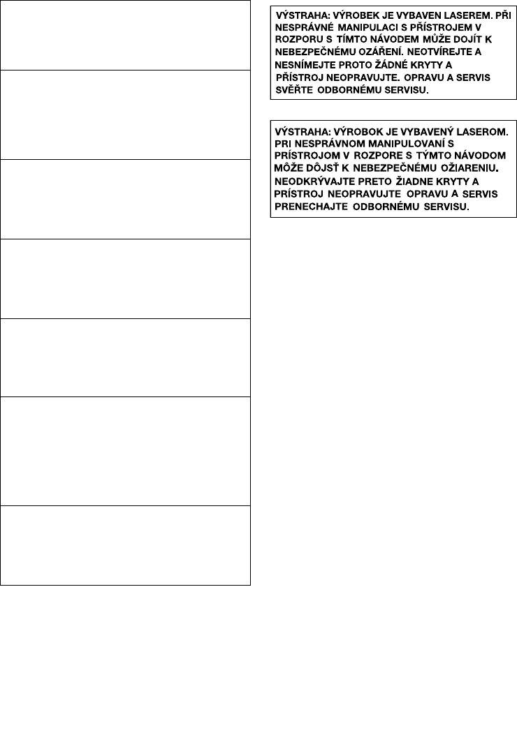 - Poniewa¿ wi¶zka lasera zastosowanego w tym odtwarzaczu p¸yt CD jest niebezpieczna dla oczu, nie wolno samodzielnie demontowaæ obudowy urz¶dzenia. Wszelkie czynnoœci serwisowe nale¿y zlecaæ osobom wykwalifikowanym.