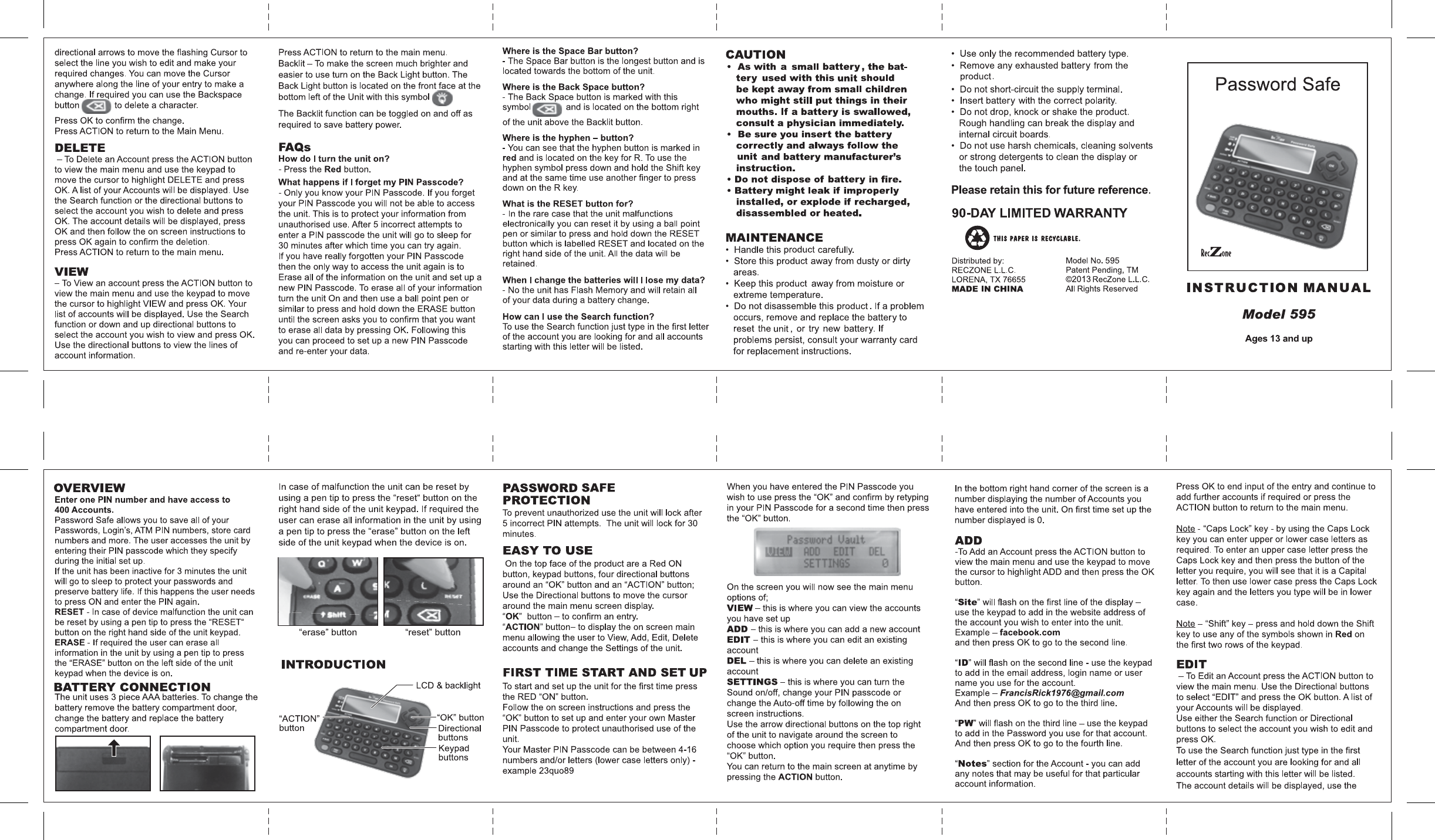 User Manual: Sharper Image Password Vault @ Sharper Image