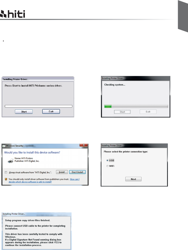 3. The PC is installing the printer driver. 4. Choose PC connection type by either