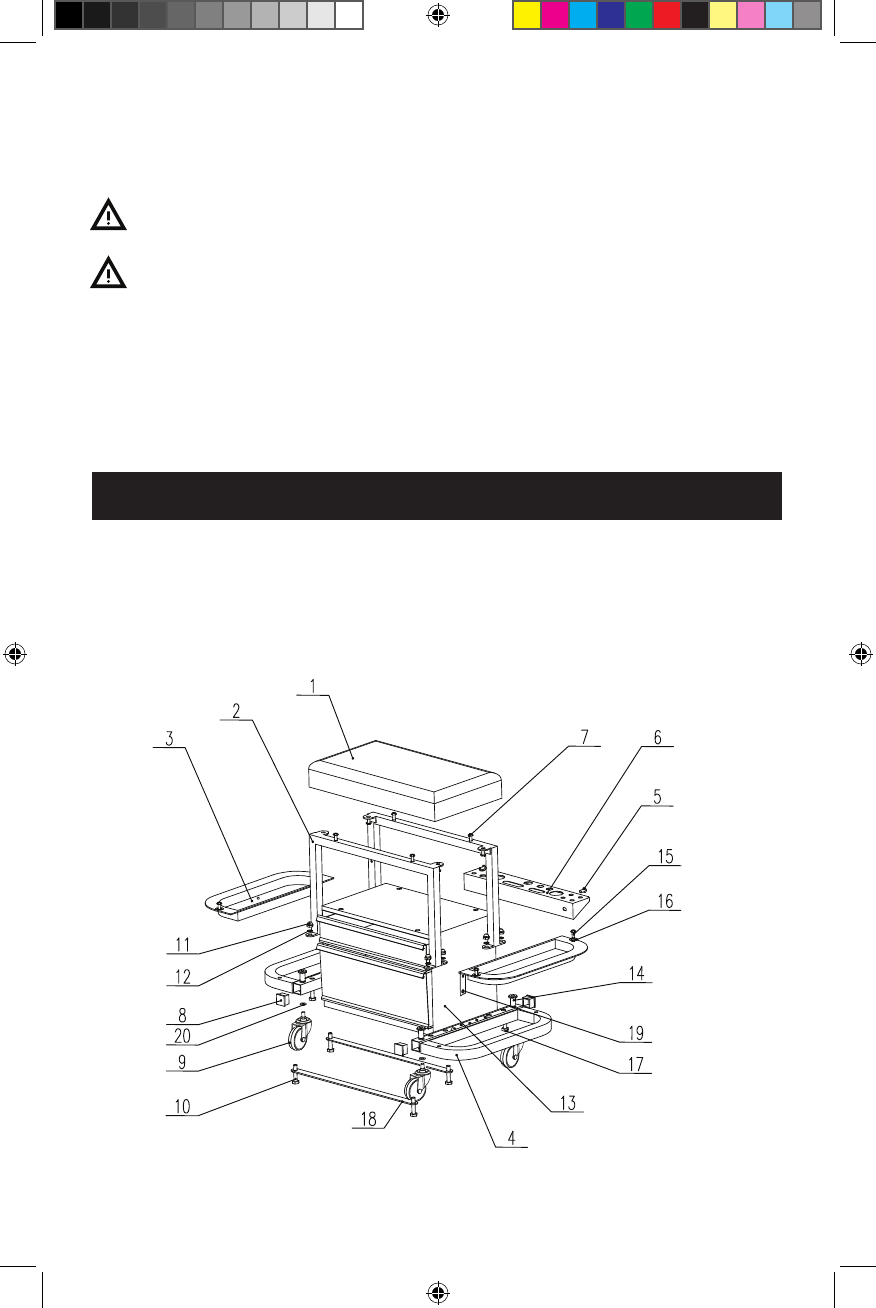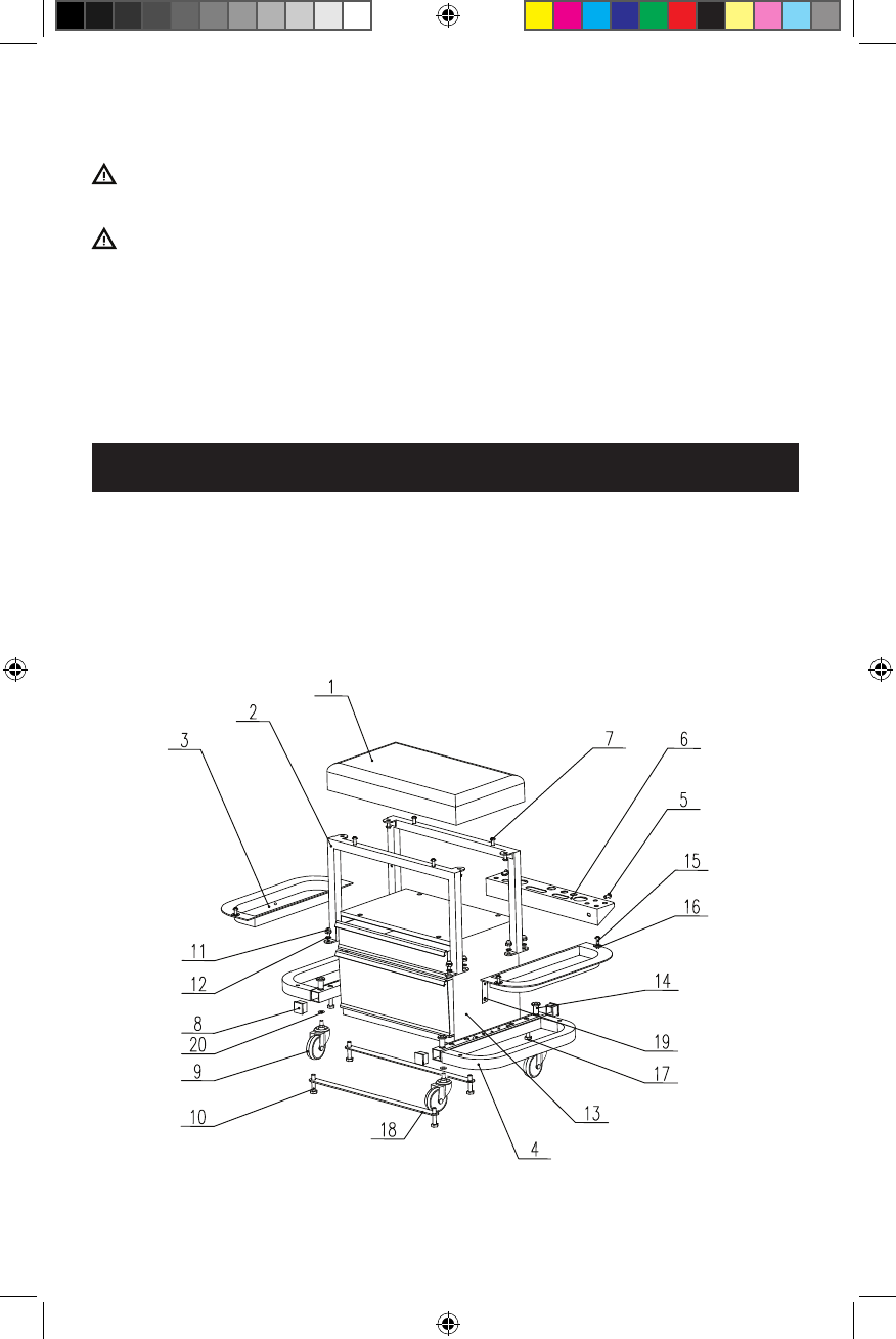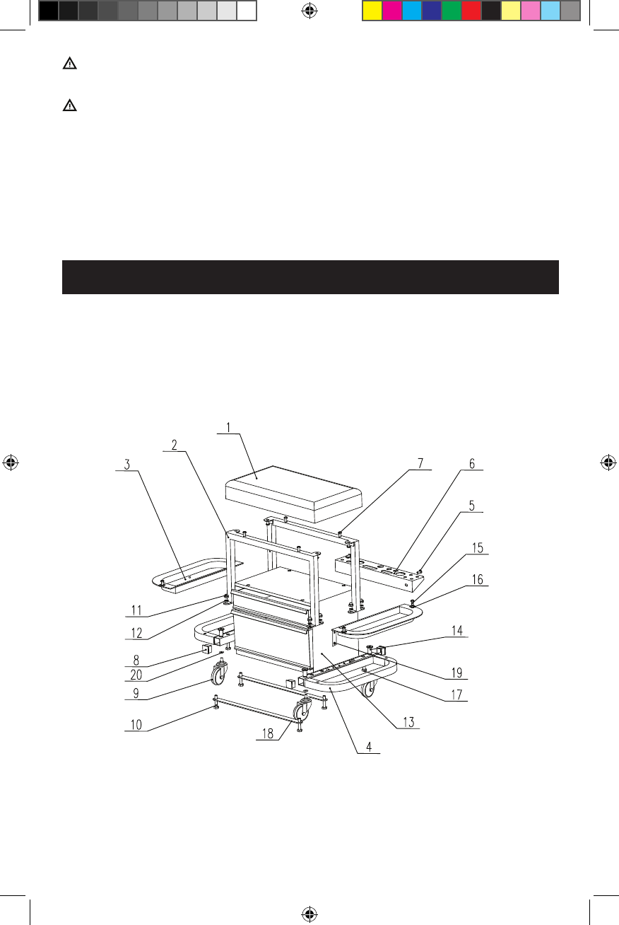 • WARNING: Do not stand on Stool Pad (1) or Plastic Trays (3).