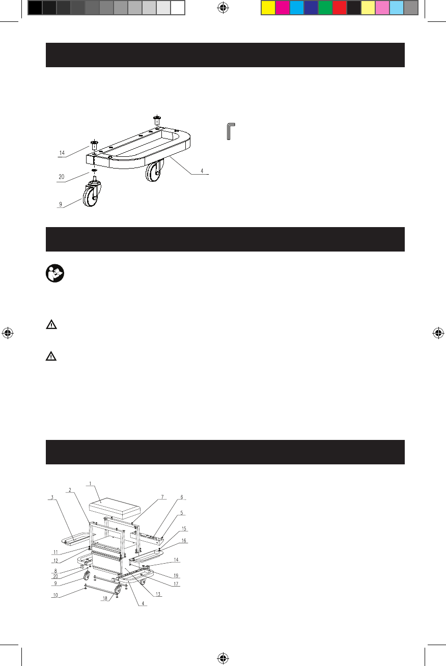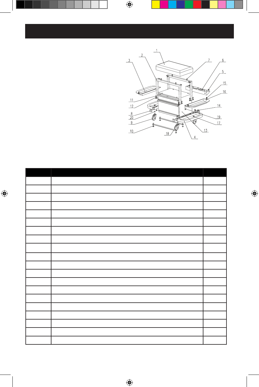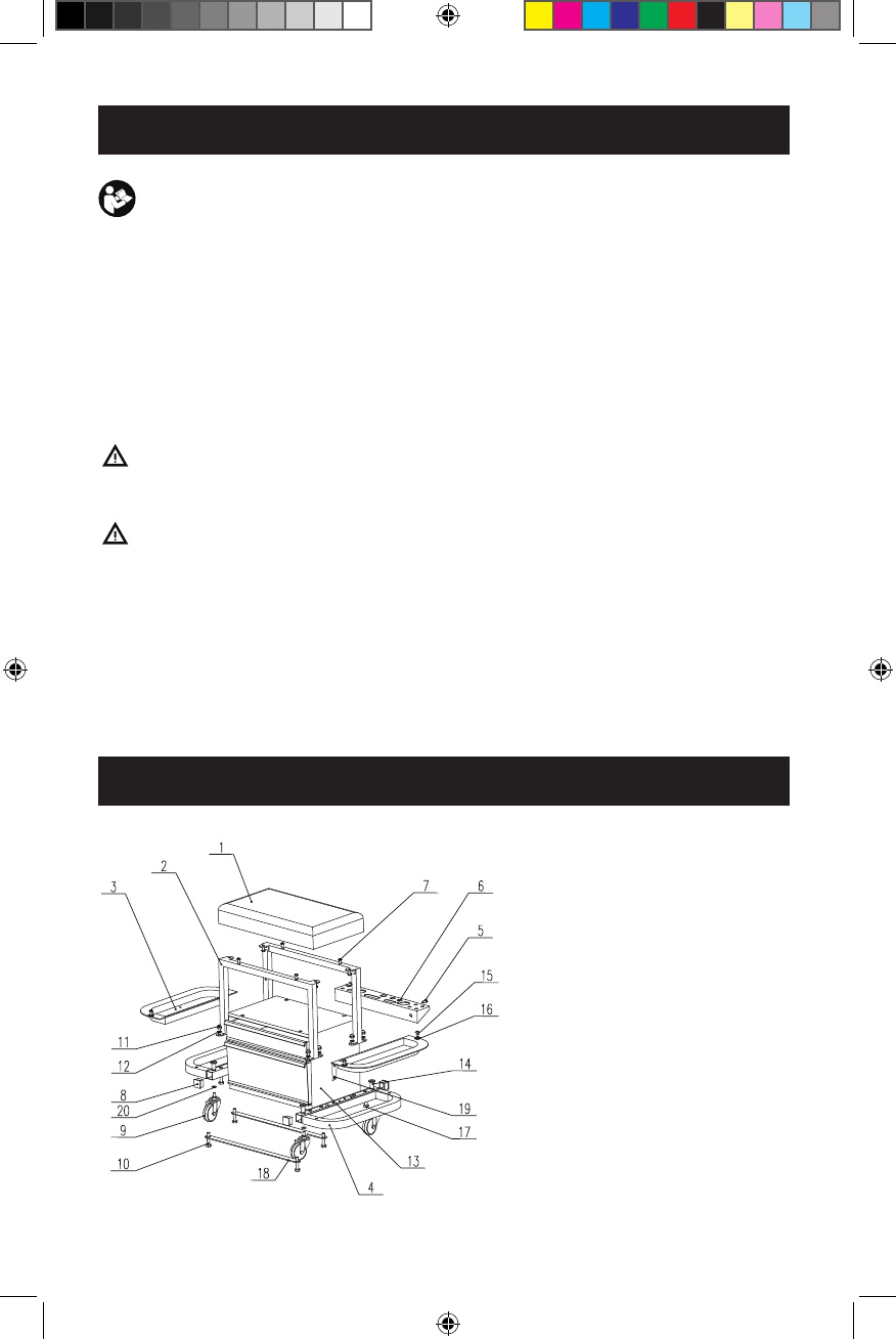 • WARNING: Do not stand on Stool Pad (1) or Plastic Trays (3).