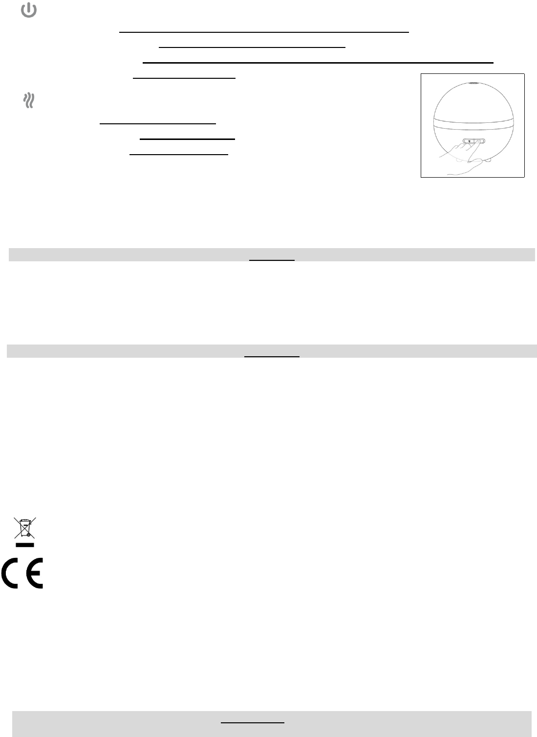 2. Press a second time to start the diffusion for 60 minutes and then OFF