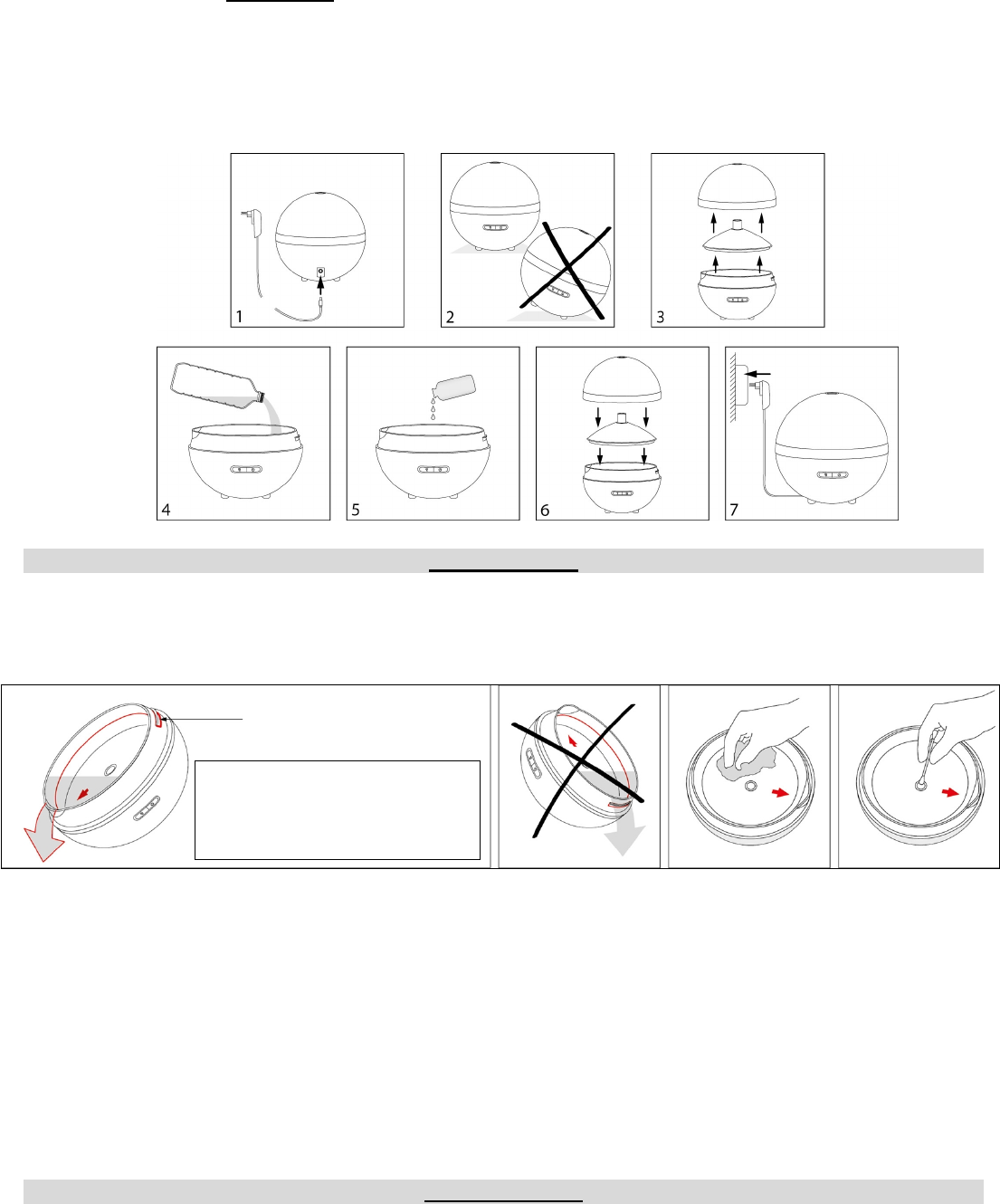 3. Clean the diffuser water tank using a soft damp cloth. Do not use corrosive detergents. Carefully rub the ceramic