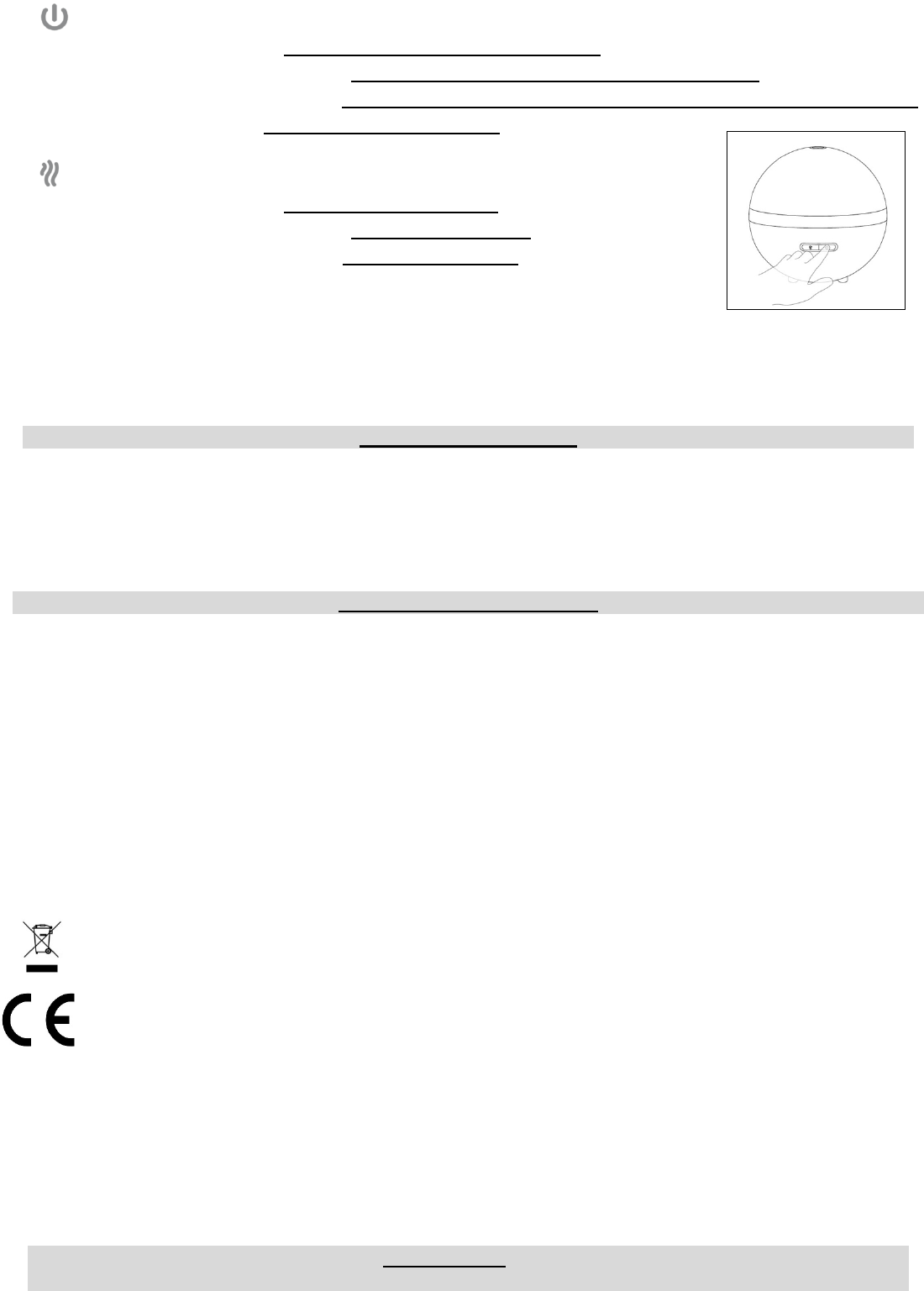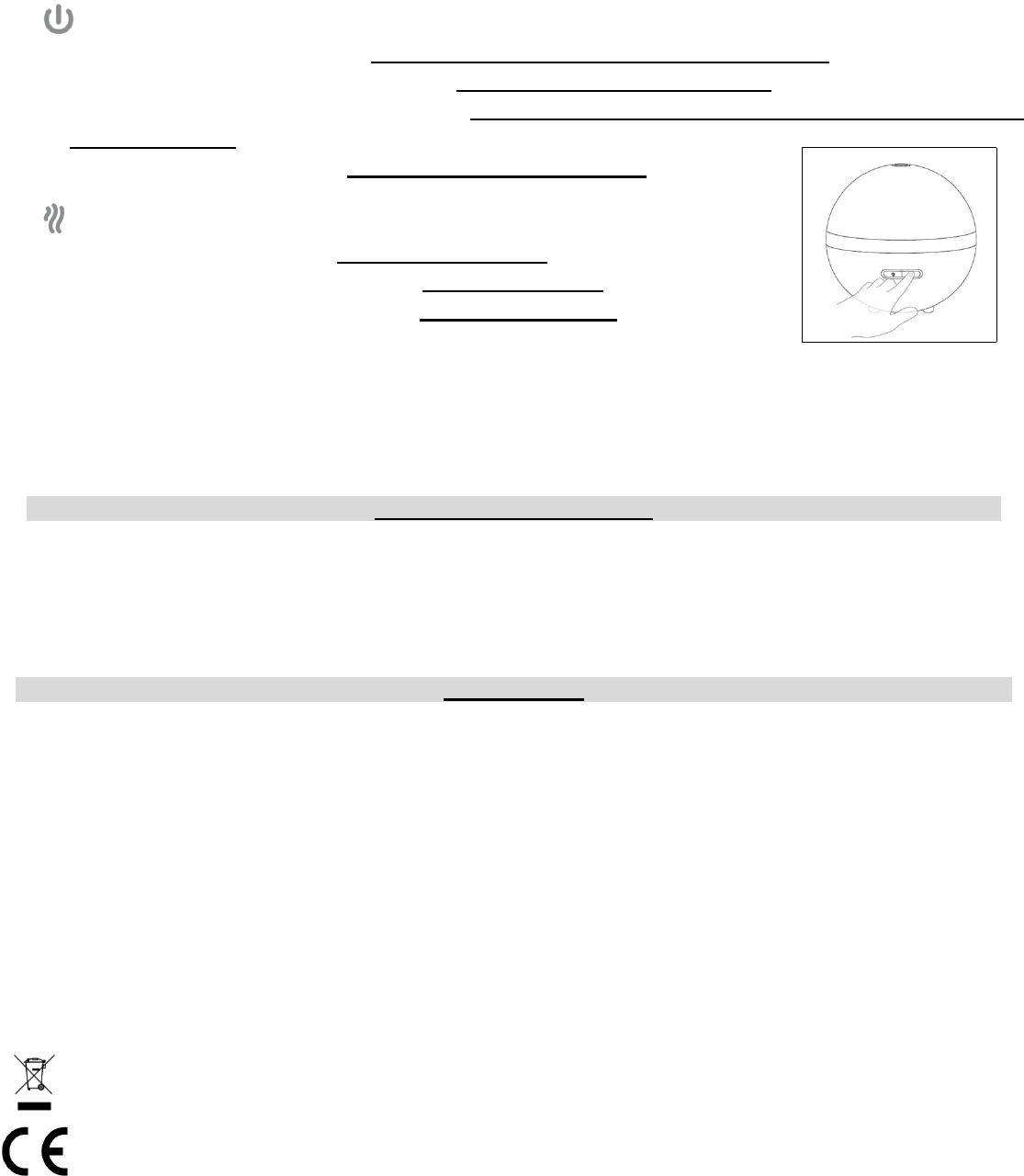1. Press once to start the diffusion in continuous mode at the highest diffusion volume (30ml/h)