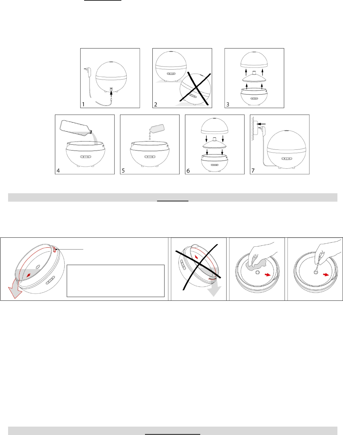 - Unplug the appliance before any manipulation such as cleaning or refilling