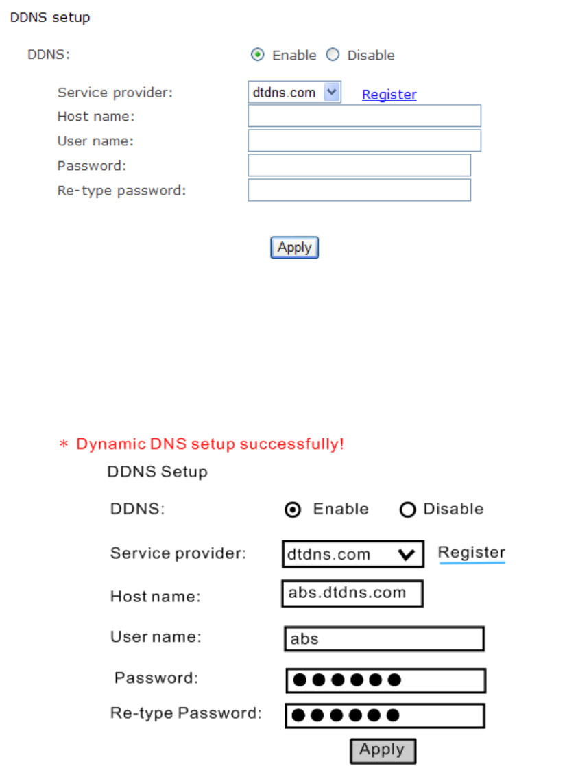 Camera. You can set up your DDNS service and the device will automatically update your DDNS server each