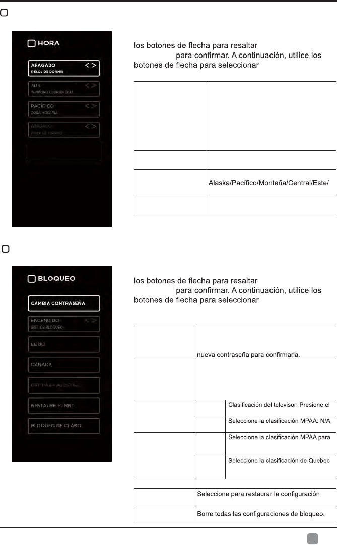 izquierda o derecha para seleccionar el menú de BLOQUEO. Use los botones 0-9 Para introducir