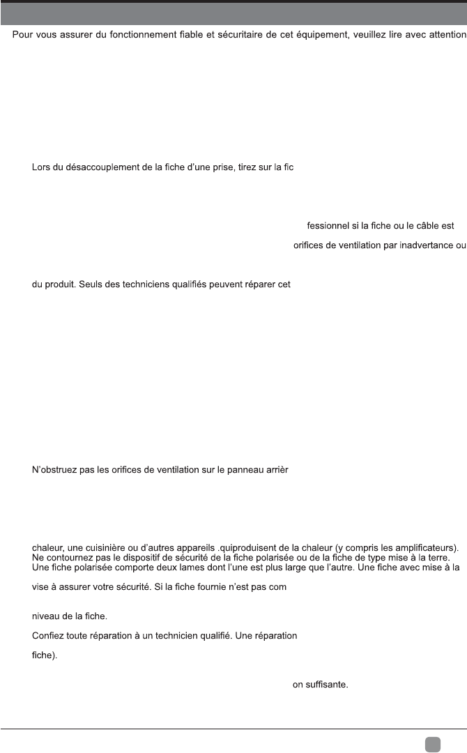 la distance séparant l’équipement du récepteur; 3)brancher l’appareil sur un circuit différent de celui du