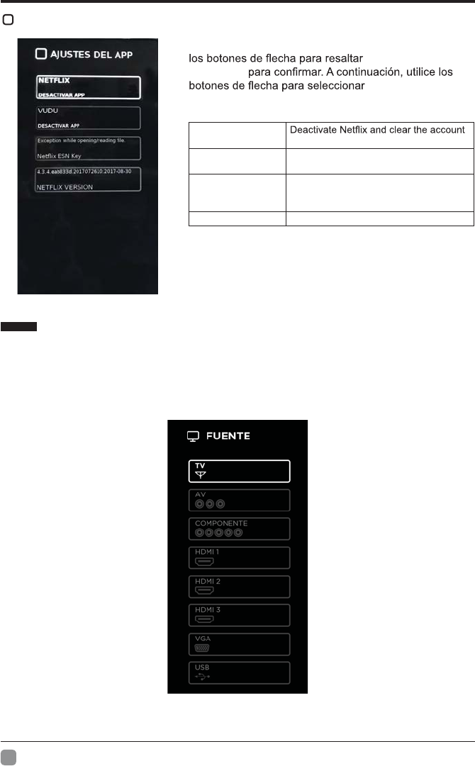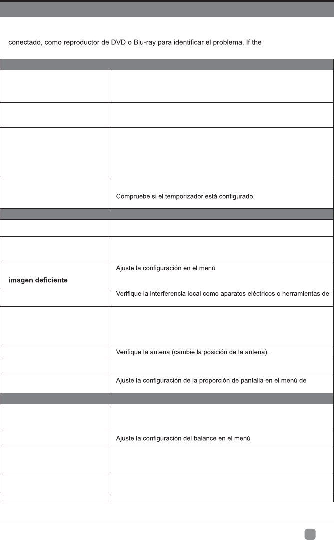Ruido de audio Mantenga el cable coaxial RF lejos de los otros cables.