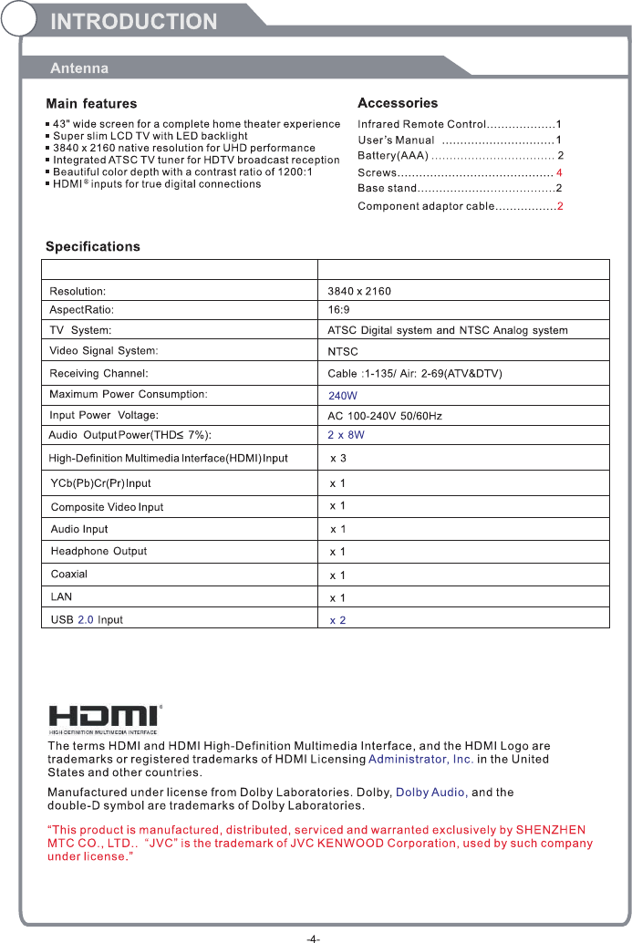 Shen Zhen MTC 65658646 LED TV User Manual MUAV6550Y 65864