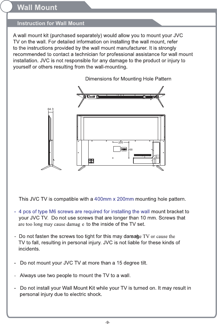 - Ensuring the television set is not overhanging the edge of the supporting furniture.