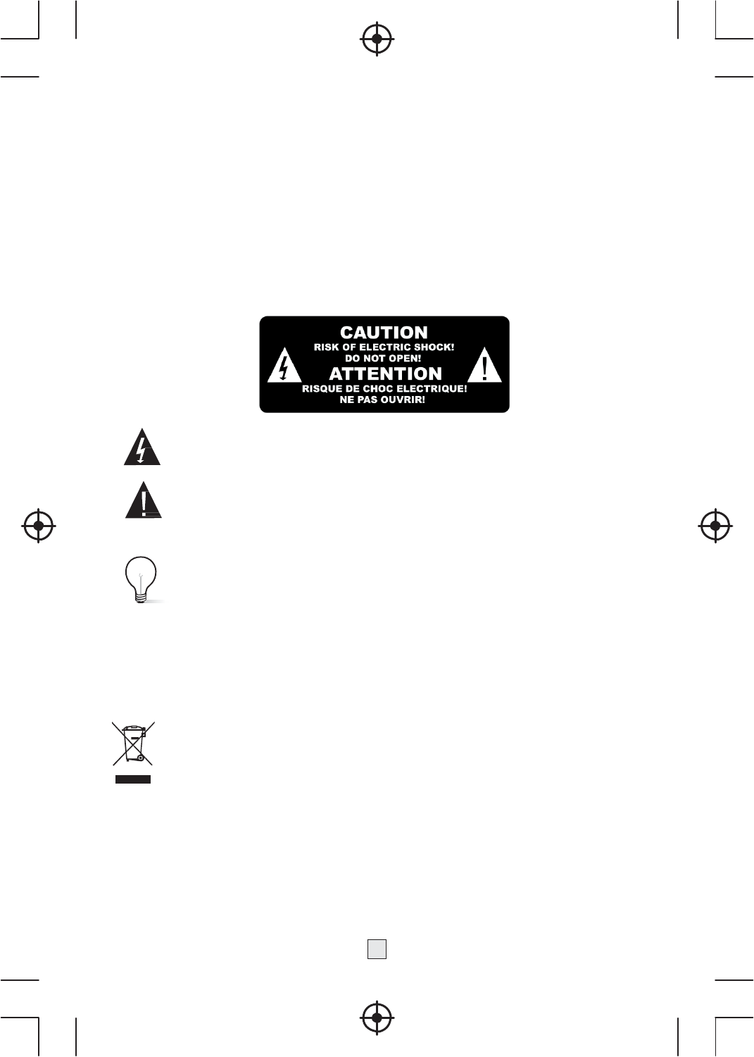 WARNING: To reduce the risk of fire or electric shock, do not expose