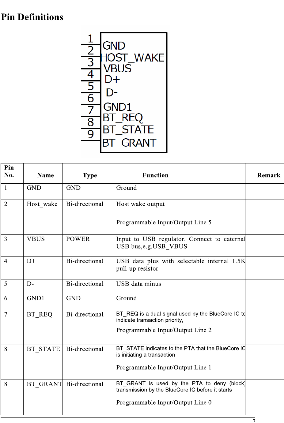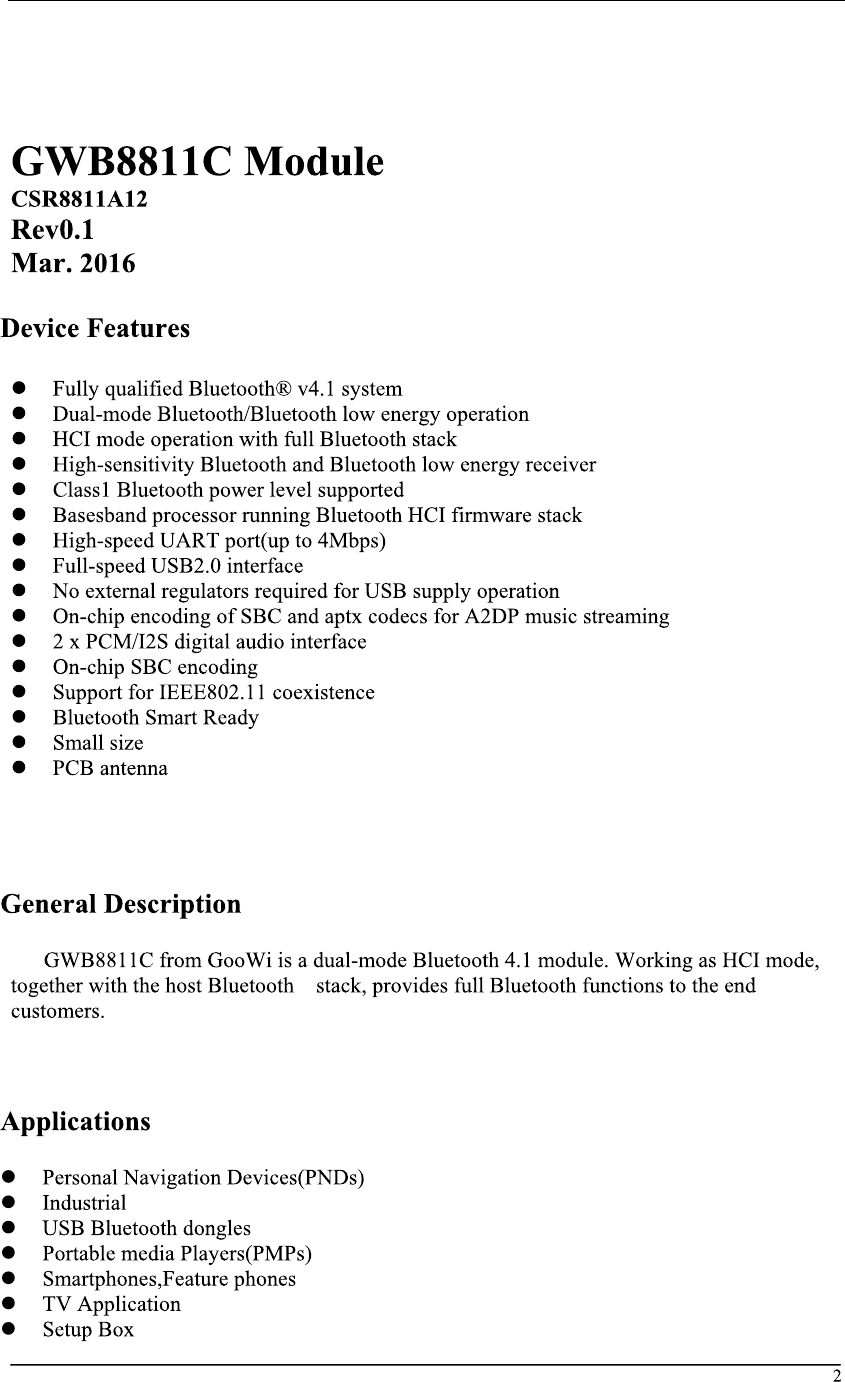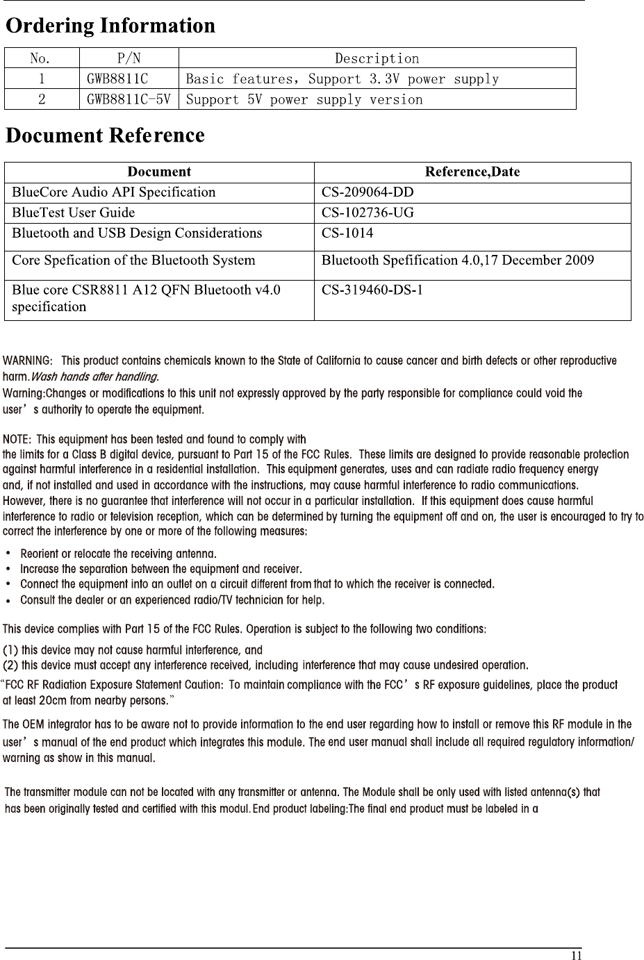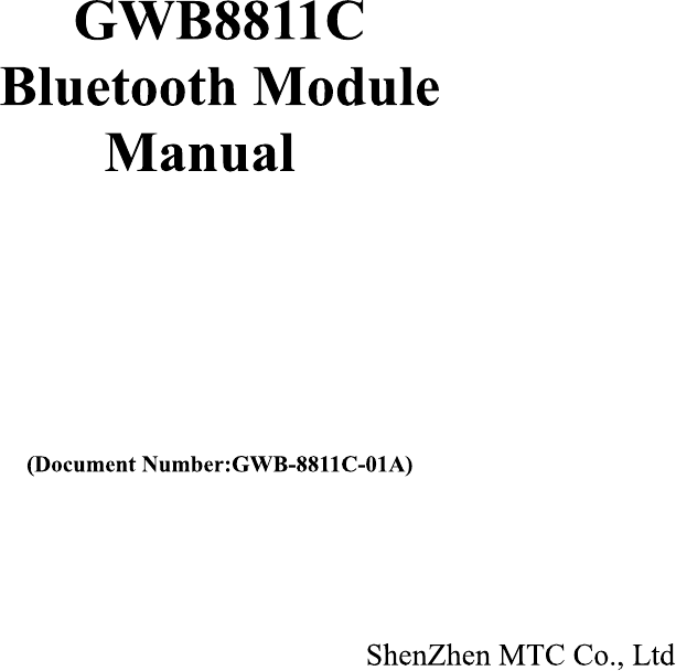 Shen Zhen MTC GW8811 BLUETOOTH MODULE User Manual