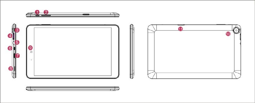 5Socket for earphone and microphone: This socket can transmit the audio signals of Tablet PC to